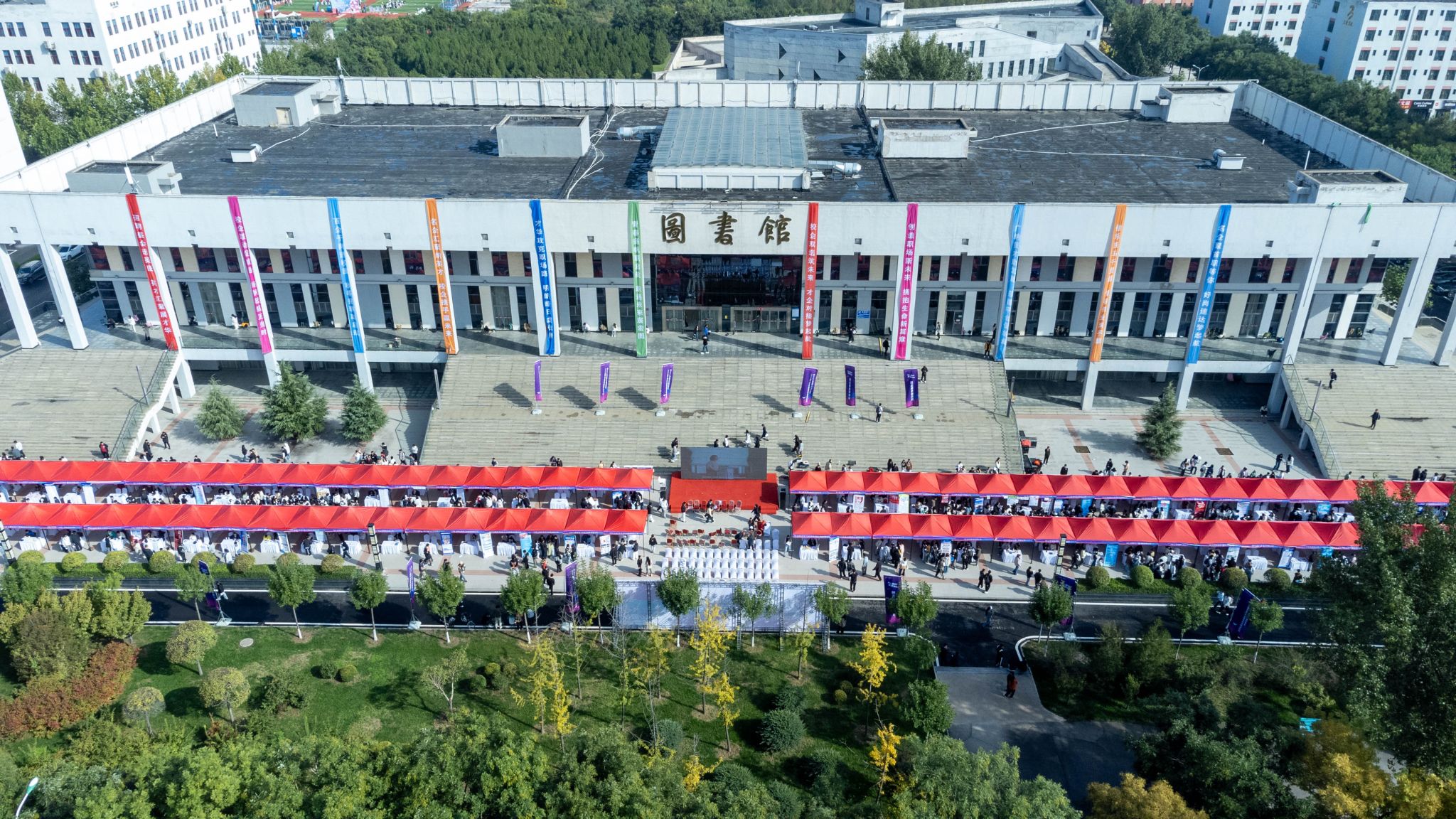 10月15日,晋中信息学院2026届毕业生校园招聘活动启动仪式暨2025年秋季大型双选会于图书馆前广场圆满举行。山西省教育厅学生处处长武振杰,晋中市太谷区人力资源和社会保障局党委书记、局长范俊宝,晋中市太谷区就业和人才服务中心主任许建勇、副主任李戈,学校党委书记张存伟、校长姬宇、校长助理杨碧霞以及二级学院院长等领导嘉宾莅临现场,共同开启了启动仪式与招聘活动的序幕。本次双选会吸引了来自北京、上海、河北、江苏、广东、山西等全国多个省市的200余家企业参与,涉及信息科技、智能制造、金融、教育、文化传媒、农林牧渔等多个行业领域,其中包括多家国有企业、知名上市公司以及世界500强企业。这些企业累计提供1000余个岗位,需求人数达7000余人,吸引了全校上万名学生积极参与,现场氛围热烈。