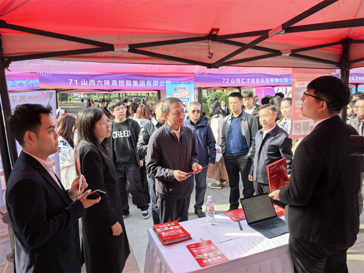 山西省教育厅学生处处长武振杰、学校在家校领导、各二级学院负责人、辅导员及异科导师亲临双选会现场,与用人单位代表深入交流,详细了解岗位需求、毕业生投递情况以及企业对人才培养的反馈意见。校领导鼓励毕业生积极把握就业机会,充分发挥专业特长,树立正确的择业观,以自信、扎实的专业能力迎接职场挑战。