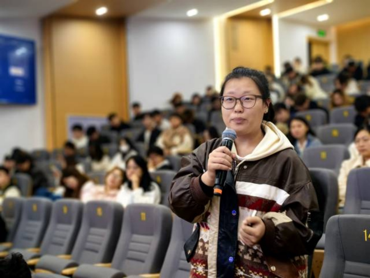 随后,国际交流学院刘一弘院长结合自身在德国FOM大学的访学经历,分享了跨文化交流中的观察与感悟。她从学术氛围、教学理念、师生互动等多个维度,对比了中德教育的异同,为在场学生开展跨文化交流提供了全新的视角。