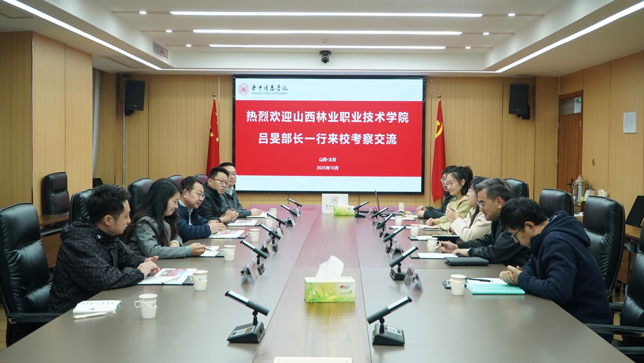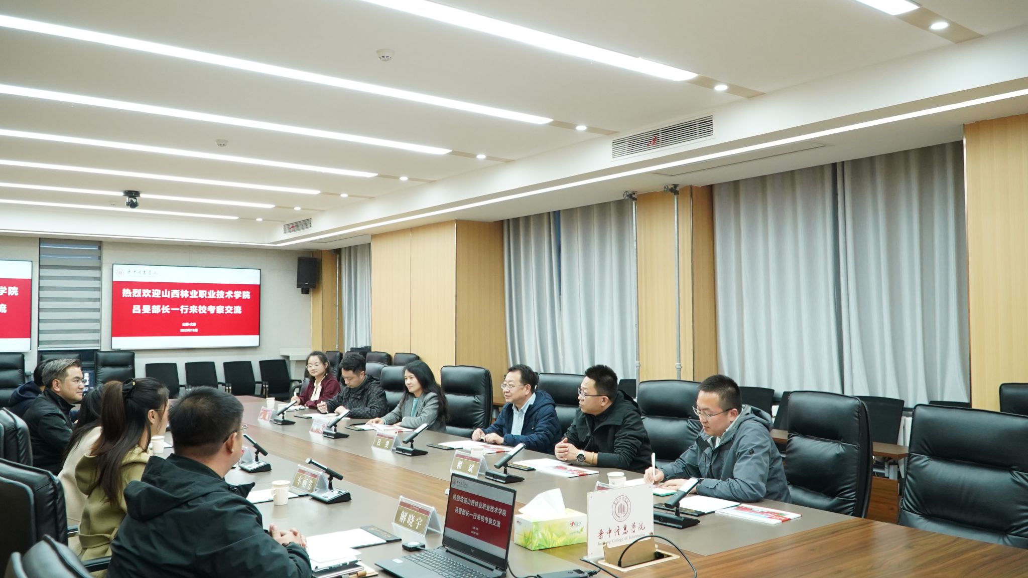 10月20日下午,山西林业职业技术学院招生就业工作部部长吕旻、招生办公室主任翟斌、就业办公室主任梅林、创新创业教研室主任陈赟等一行6人莅临学校,围绕就业创业工作开展实地考察与深度交流。此次座谈交流旨在加强两校在就业创业工作方面的交流与合作,共同探索提升学生就业创业能力的新路径、新方法。