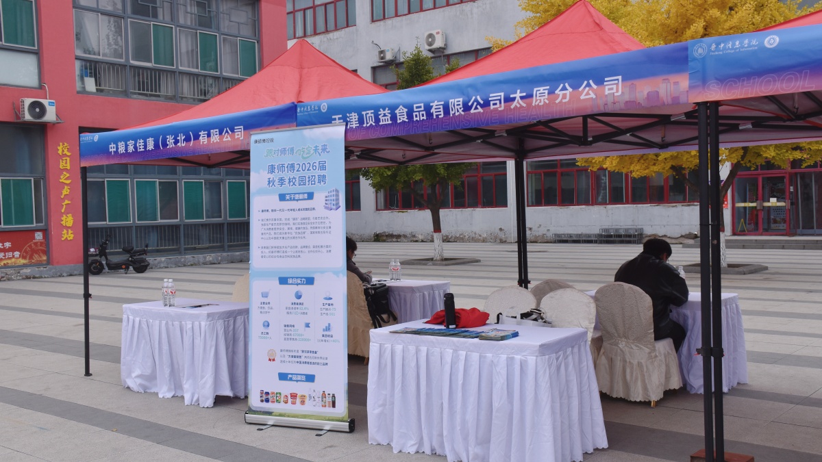 10月22日,晋中信息学院大健康学院2026届秋季大型双选会在学生服务中心前广场顺利举行。本次招聘会特邀山西正大有限公司,天津顶益食品有限公司太原分公司,天津百事可乐饮料有限公司,康师傅饮品(晋蒙)有限公司,中粮家佳康(张北)有限公司等多家优质企业进校,提供与大健康产业紧密相关的就业岗位,吸引了约290名应届毕业生到场参与,现场气氛热烈,成效显著。学校及学院领导亲临现场,与企业代表开展深入交流。