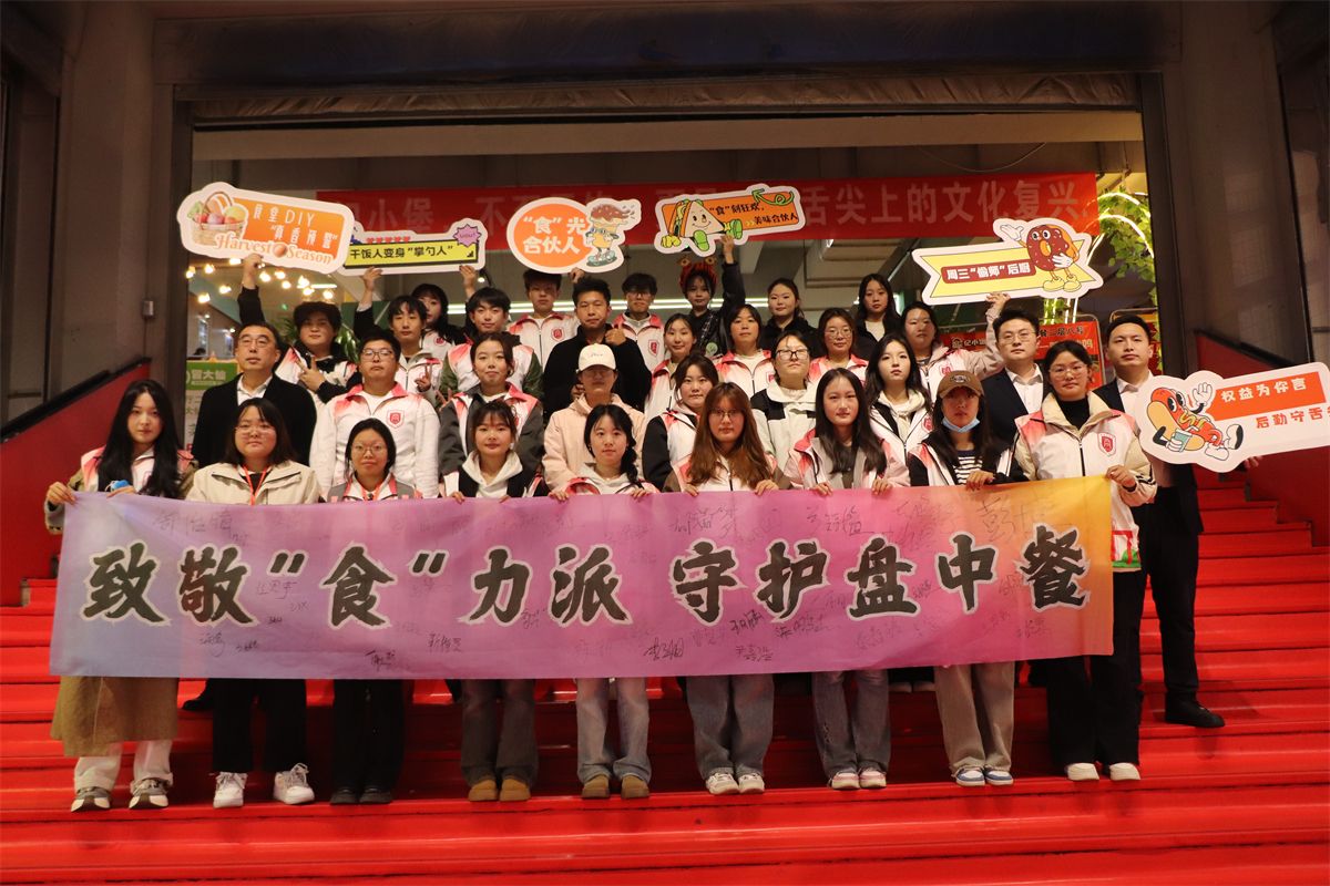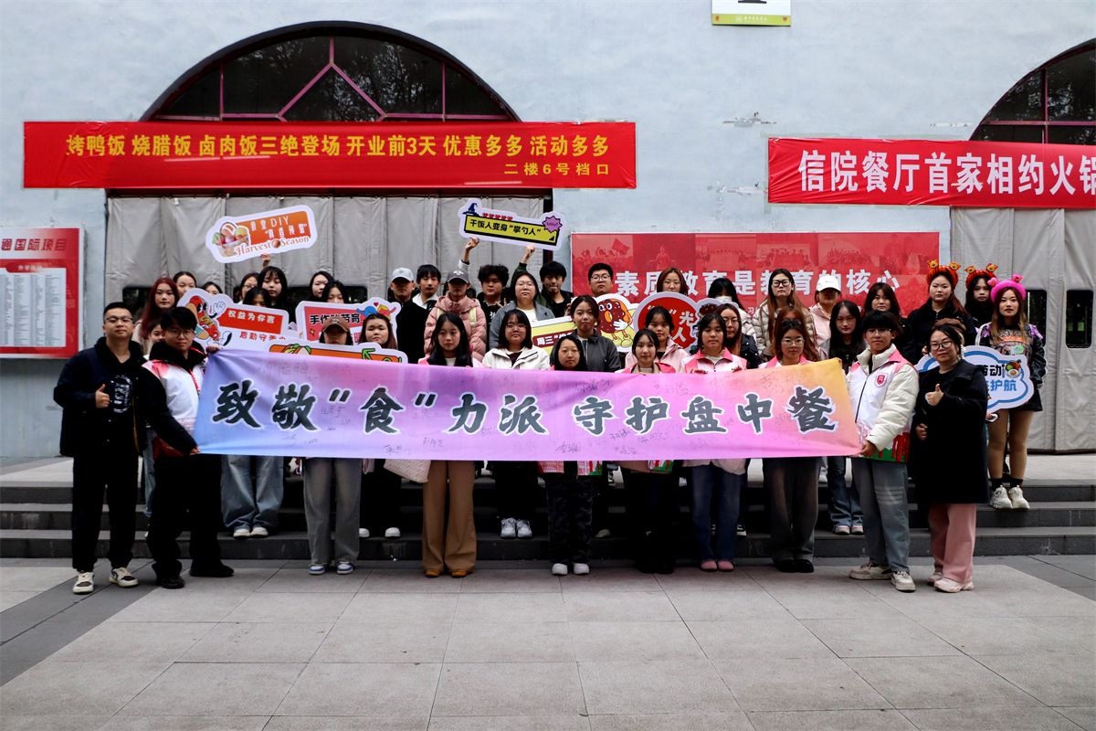 试吃区好评声不断:“果然自己做的就是香!”“今天才看到后厨这么干净,以后吃饭更放心了!”参与实践的同学们看着自己的‘作品’被一抢而空,成就感直接拉满。最后,全体学生起身向食堂工作人员鞠躬致谢,学生会权益部代表送上集体签名的“致敬‘食’力派,守护盘中餐”横幅,为这场实践活动画上温暖句号。