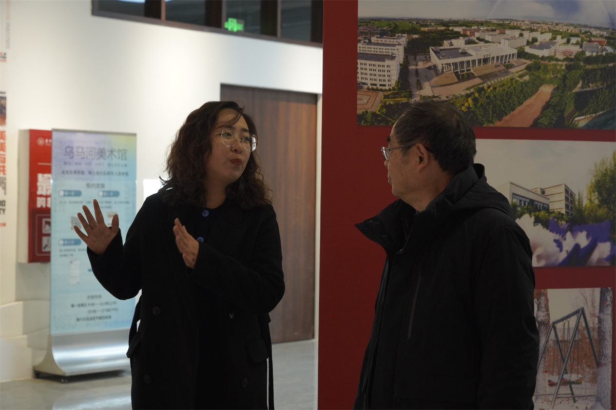 此外,李宏图教授还沉浸式探访了晋中信息学院的多元育人空间:从陈列着山西三雕技艺、尽显非遗匠心的非遗博物馆,到充满艺术气息的美育展厅;从打破传统教学边界、以剧本杀为创新形式的剧本杀学院,到洋溢着前沿探索氛围的科幻学院,每到一处,李教授都仔细聆听介绍、驻足观察,对学校将人文传承、创新教学与生活场景深度融合的做法连连称赞。他直言:“这所学校的育人空间很有特色,不仅处处透着浓厚的人文氛围,更能感受到对师生需求的用心——在这样有温度的环境里,师生自然能收获满满的快乐。”