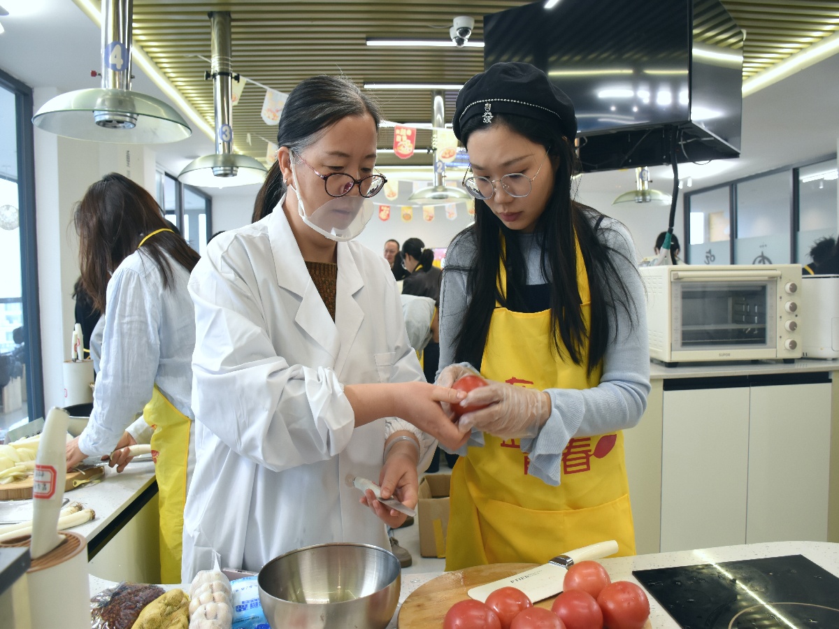 紧随食物制作环节的是“健康启航,暖冬护航”健康监测环节,由大健康学院专业老师全程负责,为参与活动的老师们送上一份冬日健康礼包。