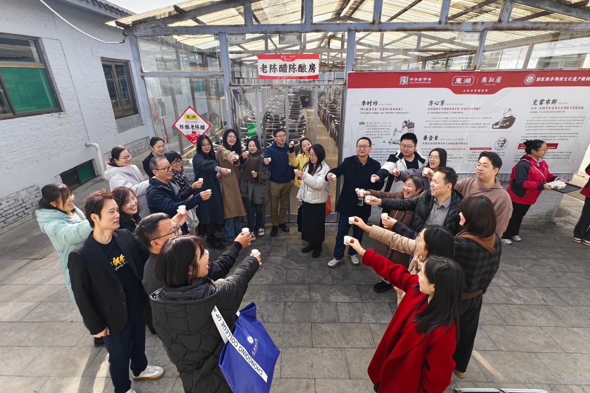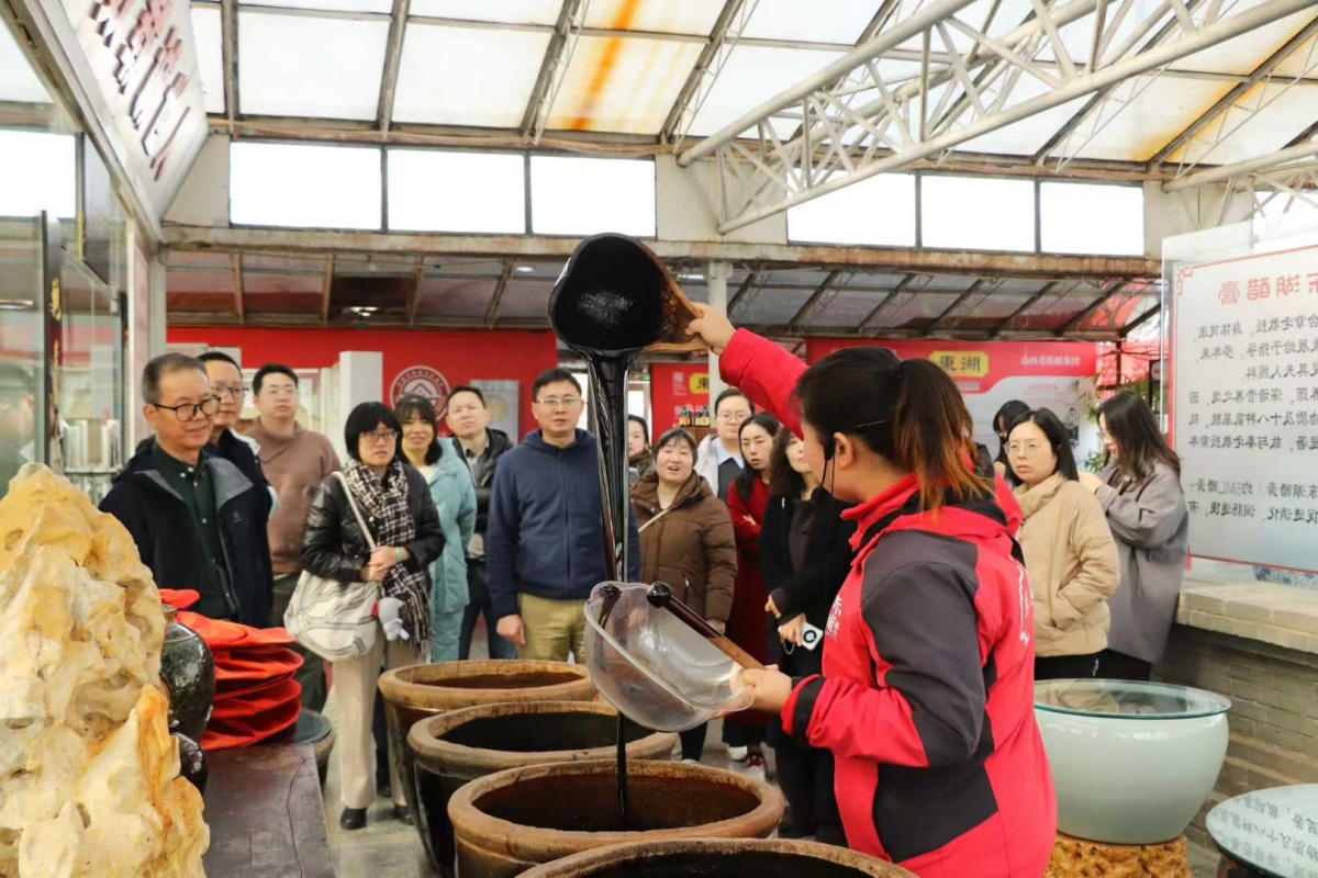 山西醋博园是一个集醋文化展示、生产工艺体验和科研创新于一体的综合性园区。在参观过程中,三校四区一行人深入了解了醋博园的完整生产流程及丰富的文化展览区域。从最初严格精细的原料筛选,到传统与现代工艺结合的发酵陈酿过程,再到高效卫生的自动化成品包装环节,每一道工序都充分彰显了企业在质量控制上的严谨态度、对传统酿造技艺的匠心传承,以及不断推动技术升级与创新的企业精神。