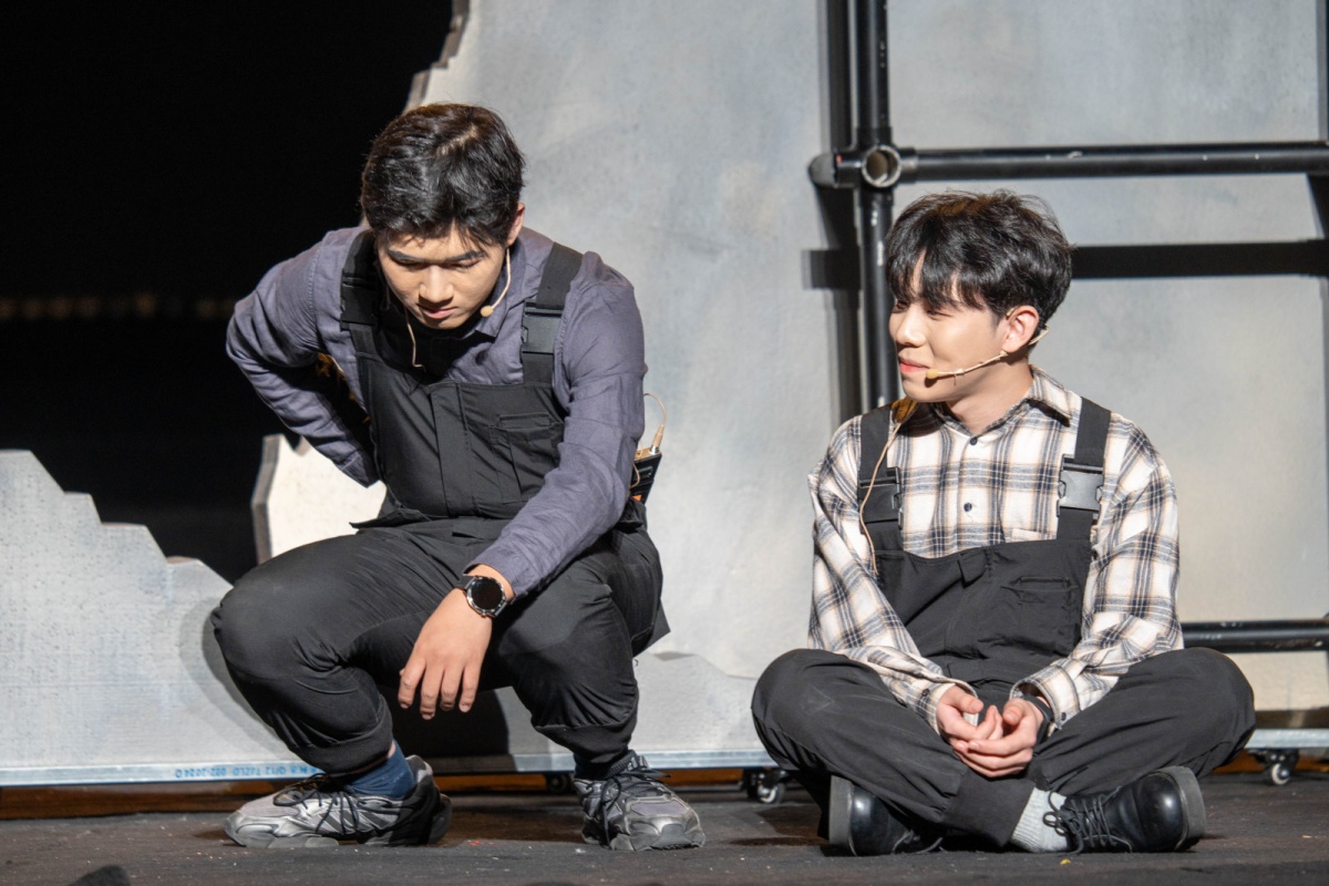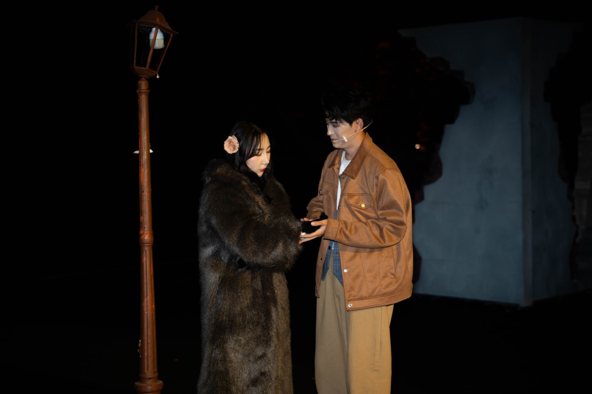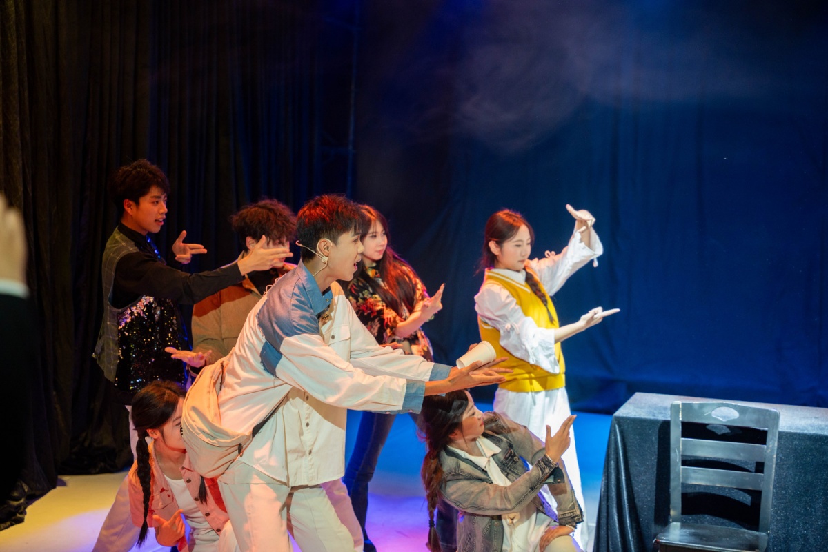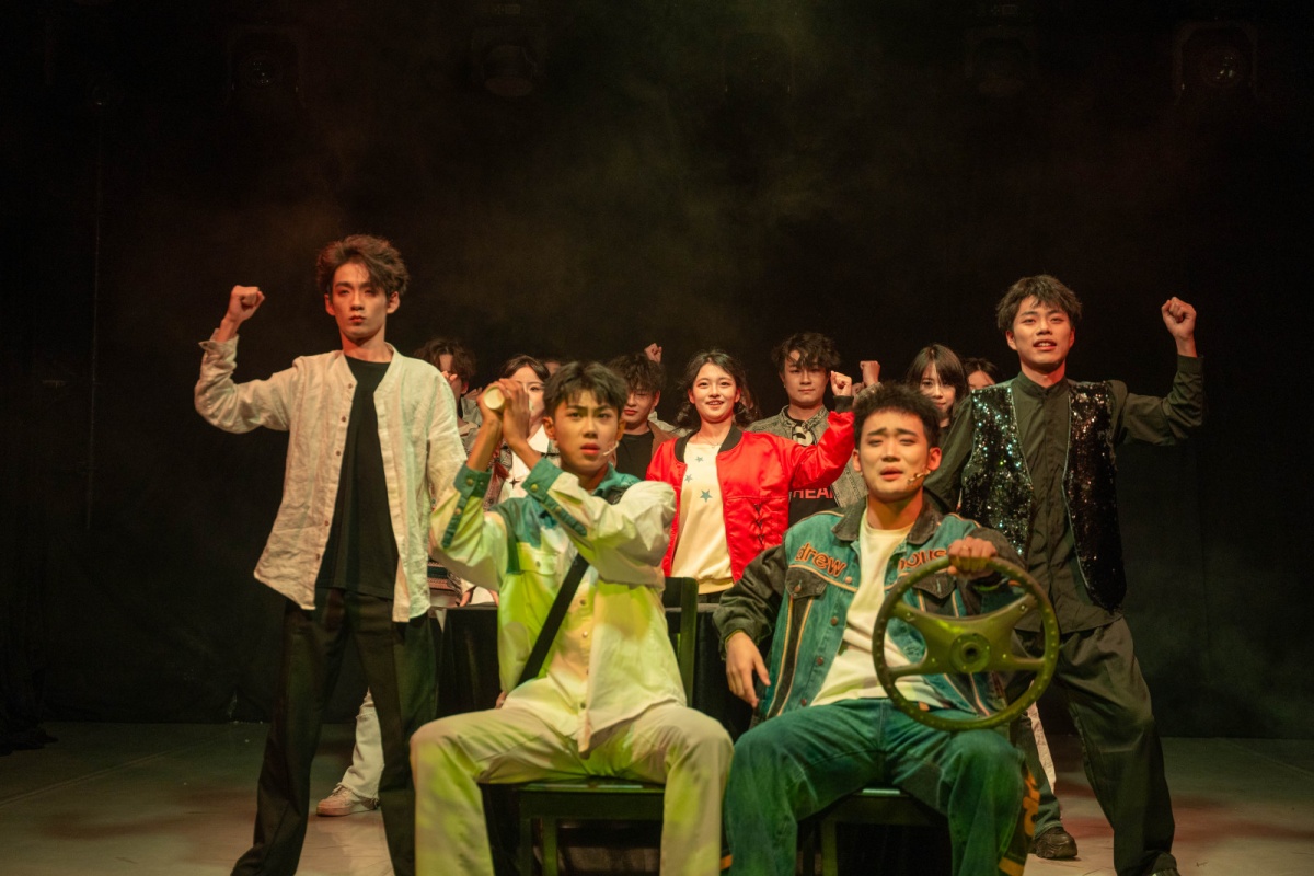 与此同时,音乐剧产业学院范志远、李毓、王姚楠老师全新打造的原创音乐剧《咸涩的星群》在火把广场·黑匣子2完成演出。该剧以“跨时空对话”为核心引擎,巧妙设置“传声筒”这一关键意象,让成年儿子与年轻时的父亲打破时间壁垒展开灵魂碰撞。舞台上,一边是执着于“求稳”、被现实磨平棱角的当代青年,一边是怀揣梦想、敢于闯荡却不善表达的年轻父亲,两人在隔空对话中揭开“求稳” 与“追梦”的代际冲突,也逐渐读懂彼此沉默背后的深情。以“盐的咸涩”与“烟火的绚烂”为美学意象,融合音乐与舞蹈的表现形式,细腻勾勒出中国式父子间“爱在心口难开”的情感图谱。