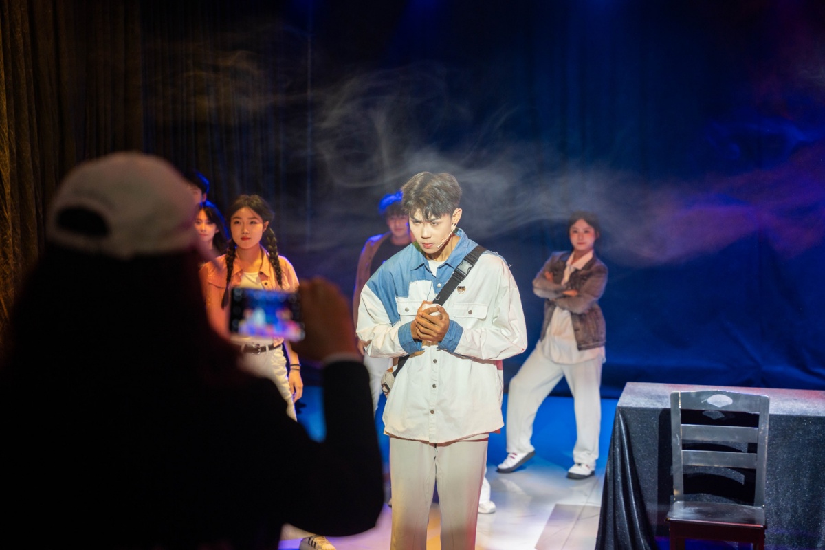 “与内心对话,向自由奔赴”。11月14日16:00,由学校艺术教育中心侯宇鑫老师编导的原创独幕话剧《面向自我的陈述》,在西昌火把广场·星美影城夏厅开演。该剧以美国地勤人员理查德・罗素偷驾飞机的真实事件为蓝本,通过独幕剧的集中叙事,多维度塑造了当代社会中被异化的普通人的复杂形象。作品最大的亮点在于彻底打破“第四堵墙”,创新采用“角色独白+观众参与”的双轨呈现模式:演员根据现场观众的着装随机邀请其扮演关键角色,再搭配多媒体特效与沉浸式舞美营造的真实场景感,让整个剧场不再是单向传播的演出空间,而是转变为探讨现代人生存困境与自我追寻的动态论坛。
