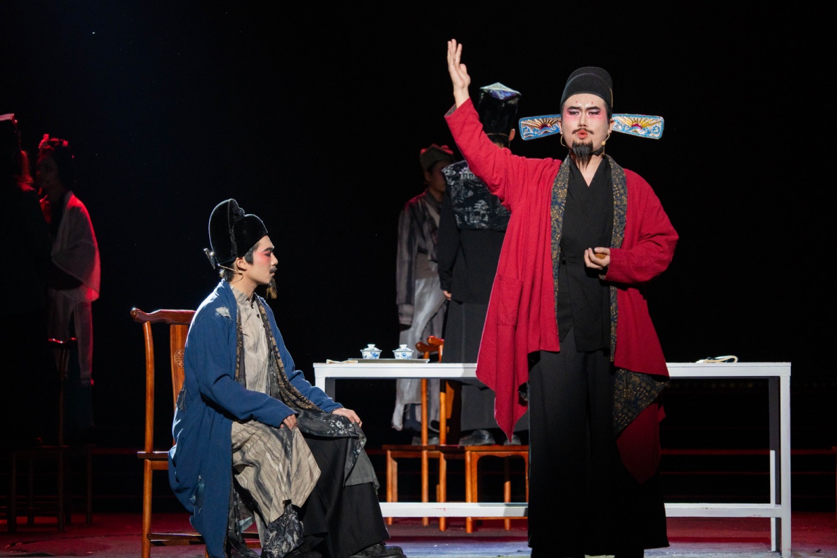“于故纸堆中寻真相,于迷雾深处见人心”。由学校艺术教育中心精心打造的话剧《历史中的轶事一则》在西昌火把广场·火舞台精彩上演。该剧由梁栋老师执导,以明末太原府官场迷案为叙事内核,用极具张力的舞台语言解构封建权力场域。以先锋手法重构历史叙事,聚焦个体从体制妥协者到理想殉道者的悲壮转变,通过群像刻画展现封建社会各阶层的生存困境与人性多面性。舞台上,大型舞美巧妙外化角色内心的挣扎与压迫感,终幕“卸袍”的决绝与“宴饮”的奢靡形成强烈对比,如闪电划破长夜,让观众在历史的镜像中窥见权力与理想的博弈。
