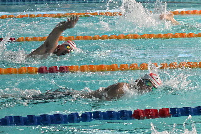 15日—16日的第二场赛事中,晋中信息学院代表队乘势而上、再接再厉,持续扩大领先优势。男子项目中,我校队员延续强势表现。徐千皓在男子100米仰泳中再度夺冠,王晋博紧随其后获得亚军,形成“双保险”包揽前二;冯鹏利在男子50米蛙泳中拿下季军,弓砻基、史栋芳、苏翔翔在男子50米蝶泳中分别斩获第三、四、五名,展现了项目整体实力。团体项目中,男子4×100米自由泳接力队默契配合、奋勇冲刺,成功摘得冠军,为团体总分再添重磅积分。