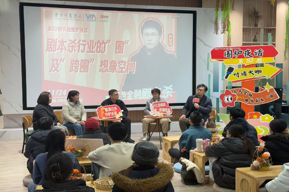 近日云端剧本杀学院与杏花书院联合策划第82期“围炉夜话”专题活动,本次活动特邀剧本杀行业历史题材创作领域资深从业者林楚栋,太谷区档案局局长、档案馆馆长杨艳艳,太谷区史志研究室副主任王少静,太谷区文旅局副局长李潇丽担任活动嘉宾。以剧本杀行业的“圈”及破圈想象空间——历史题材为纽带的文化融合与创新为主题,与全校师生一同探讨历史题材剧本杀的破圈之路,沉浸式探索当“厚重”的历史档案“邂逅”沉浸的剧本杀游戏,会碰撞出怎样的火花?当高校学子“执笔”地方红色故事,又将开启怎样一段文化创新的旅程。
