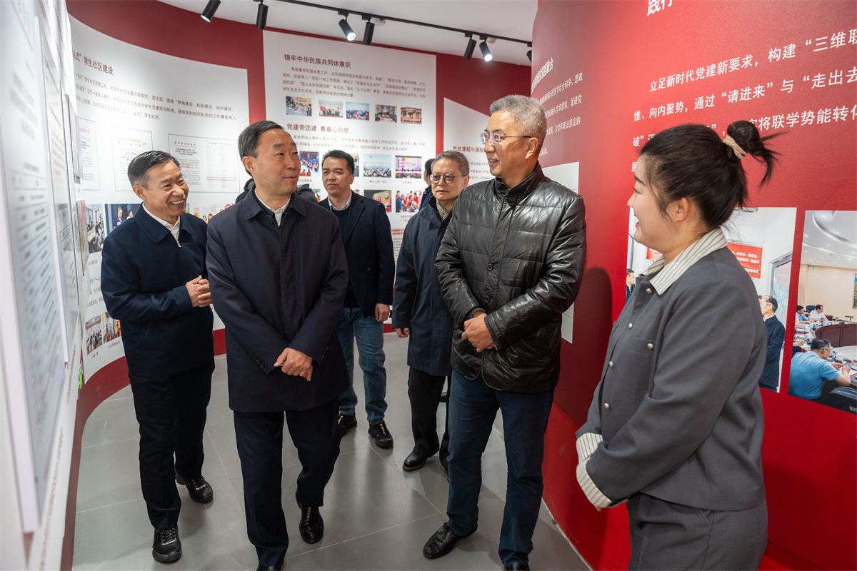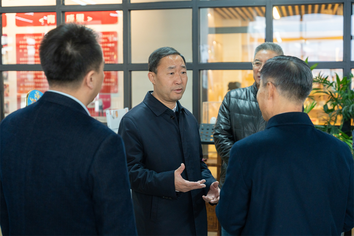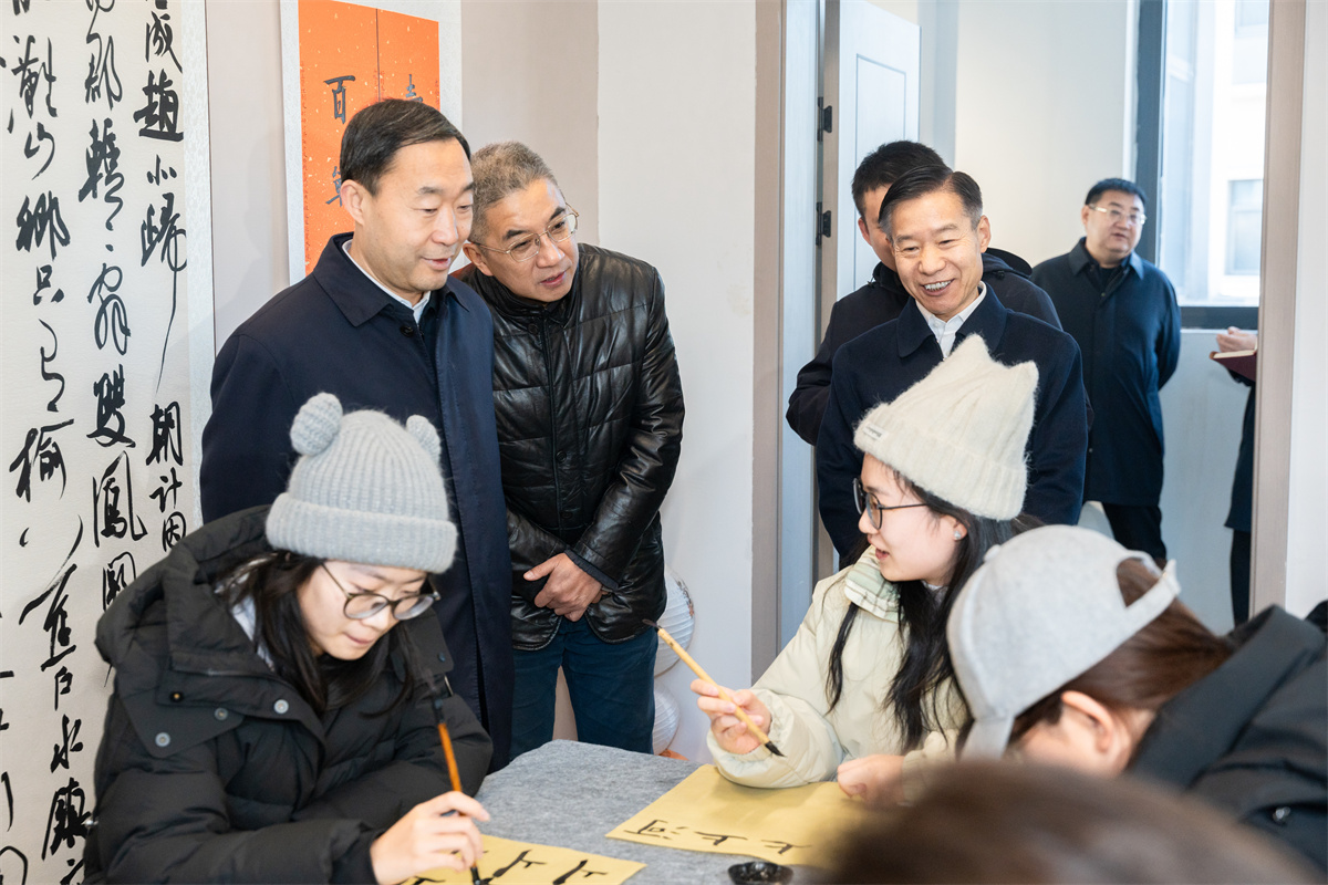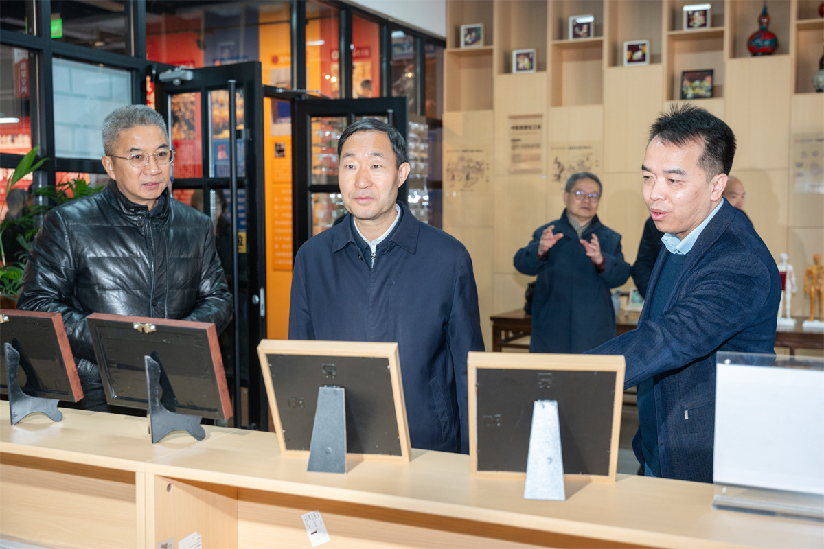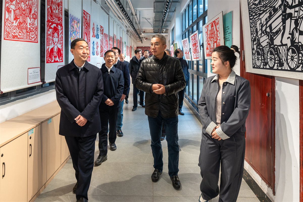 常书铭一行走访了乌马河非物质文化遗产馆各具特色的6个展厅,现场观看了学生练习国家级非遗项目形意拳,对学校将发源于太谷的形意拳引进校园并作为全校学生必修课、传承非遗文化的做法表示赞许。他强调,非遗文化既是传承中华优秀传统文化的重要载体,更是激活地方产业发展的宝贵资源,要持续深挖非遗文化蕴含的双重价值,既要充分释放非遗文化的育人潜力,将其融入人才培养全过程,以文化浸润提升人才综合素养,也要强化其产业赋能作用,让非遗中的创意理念、技艺精髓与地方特色产业深度融合,推动传统文化在校园育人与地方振兴的双向互动中焕发新活力。