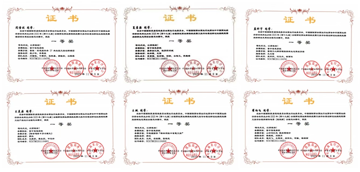 近日,2025年(十九届)全国高校商业精英挑战赛文旅与会展创新创业实践竞赛圆满落幕。学校学子凭借扎实的专业功底、创新的商业思维与默契的团队协作,从千军万马中脱颖而出,斩获国奖54项,其中一等奖6项,二等奖10项、三等奖38项,同时荣膺“最佳院校组织奖”。