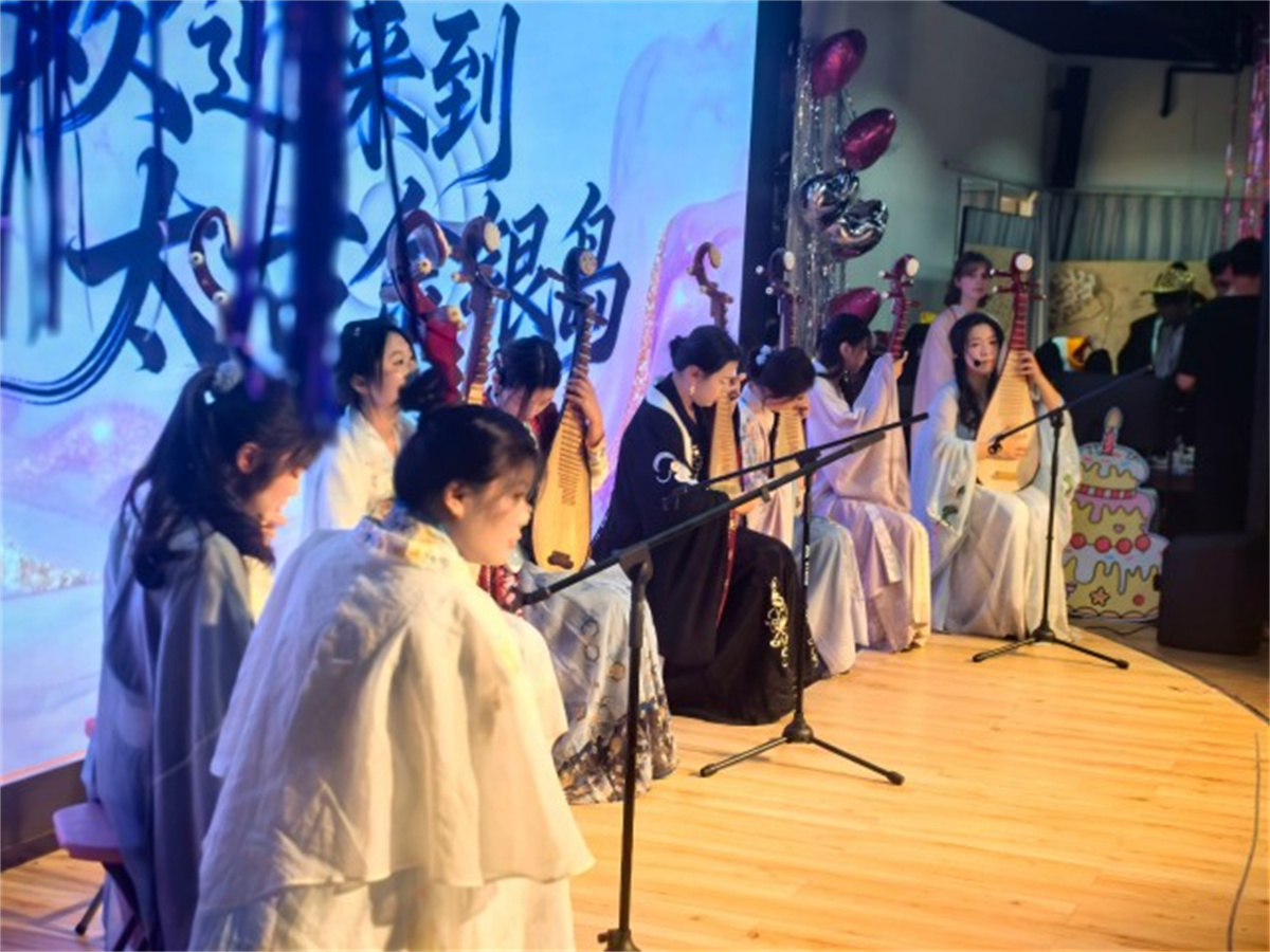 “几个月前我还不认识琵琶,现在能登台表演,特别开心。”来自越南的留学生孙陈草怡在后台说,这是她参与学院“山海古风工坊(琵琶)”的成果。学院邀请专业老师从乐器构造、演奏技法到文化内涵进行系统授课,留学生们不仅掌握了演奏技巧,更在了解《琵琶行》的诗句中,触摸到中华文化的精神内核。