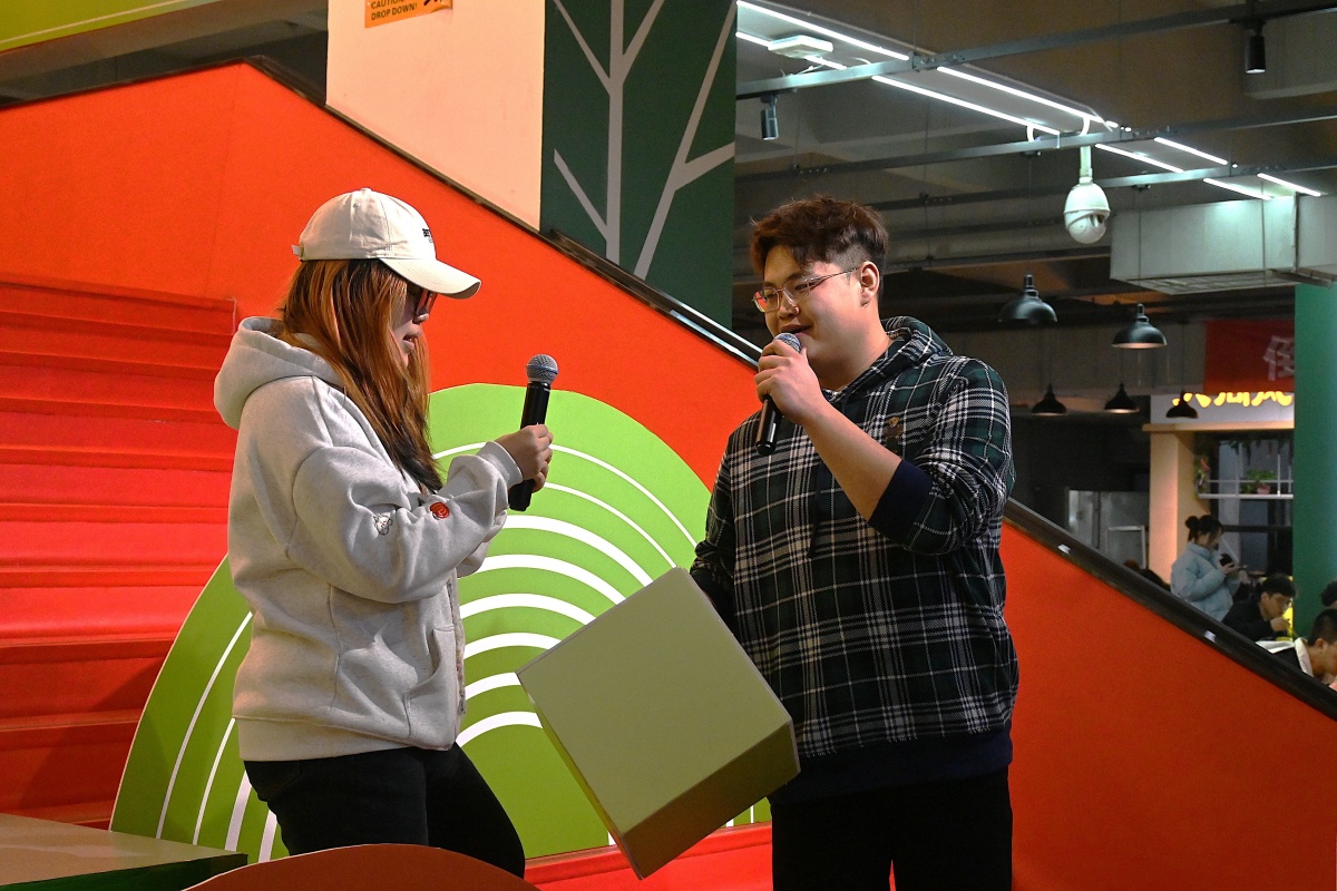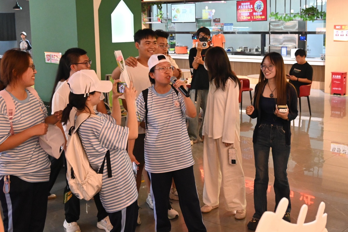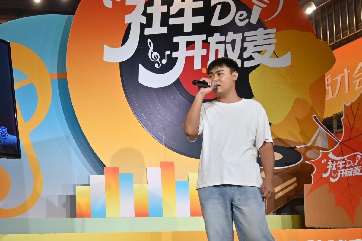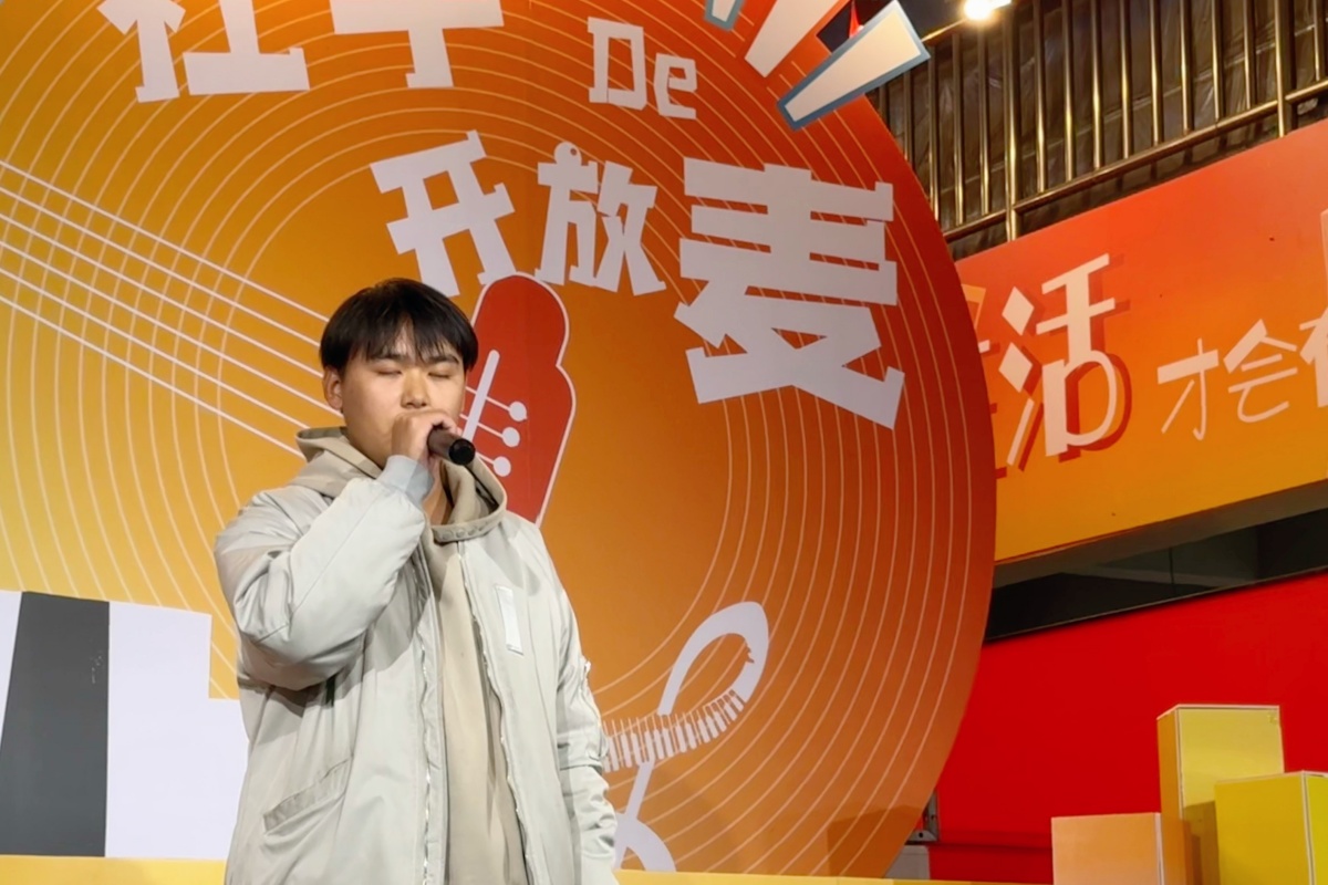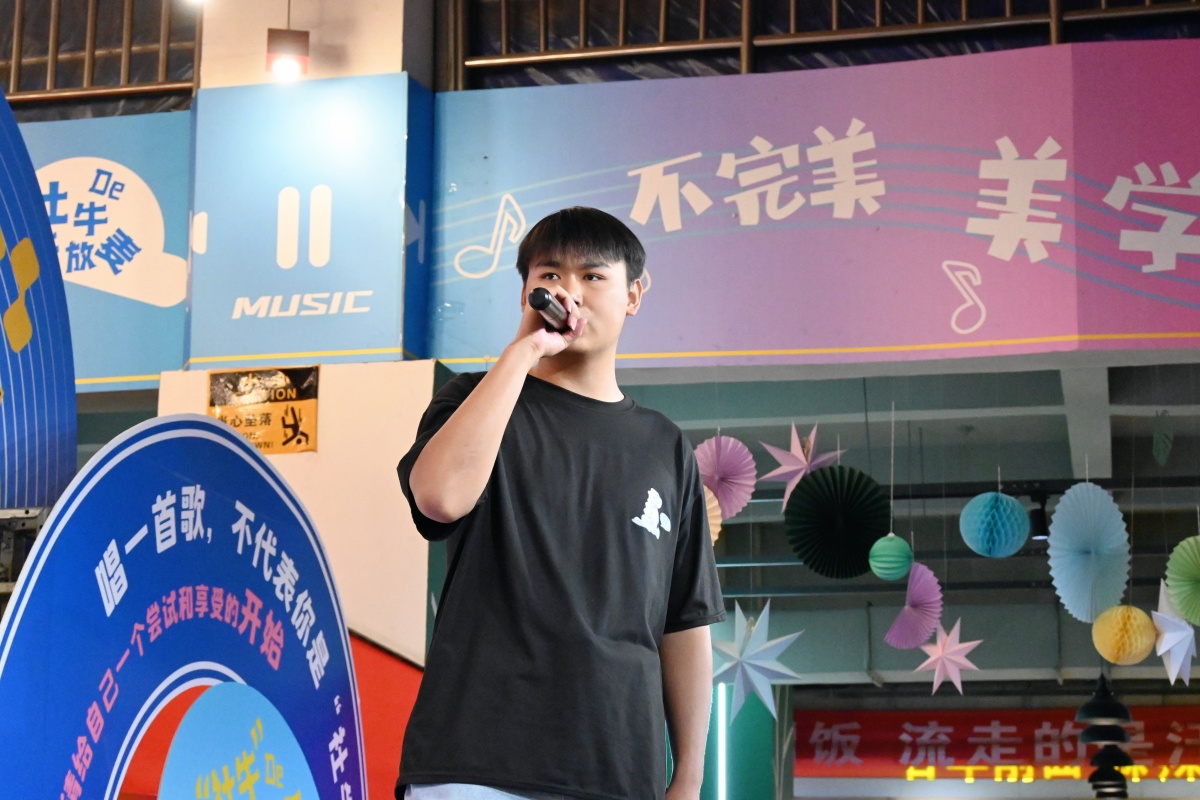 信息工程学院的冯学海同学站在步梯边缘,手指死死攥着衣角,话筒在掌心里被汗水浸得发潮。他微微发抖的声音,像秋日枝头最后一片叶子。突然,台下有人轻声接唱了下一句,接着是第二个人、第三个人……直到整个空间都回荡着同一段旋律。手机闪光灯一点点亮起来,像一片缓缓铺开的星河。“那一刻我突然明白,原来大家不是来挑错的,而是来接住我的。”现在的他,已经可以从容地站上台阶中央,唱完一整首歌还会笑着问大家下一首想听什么。他说自己不是变厉害了,只是在这里被温柔对待过,所以也想把这份勇气传递下去。