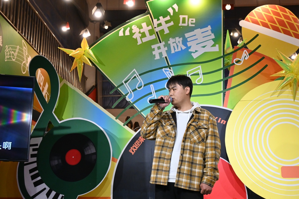 有人说,“社牛”De开放麦有种特别的“不完美美学”。不追求完美的唱功,只珍惜每一次真诚的发声。一年来,青藤书院工作人员累计发出800多次邀约,用接唱、和音、打节拍、举闪光灯等方式,为每一位登台者托底。