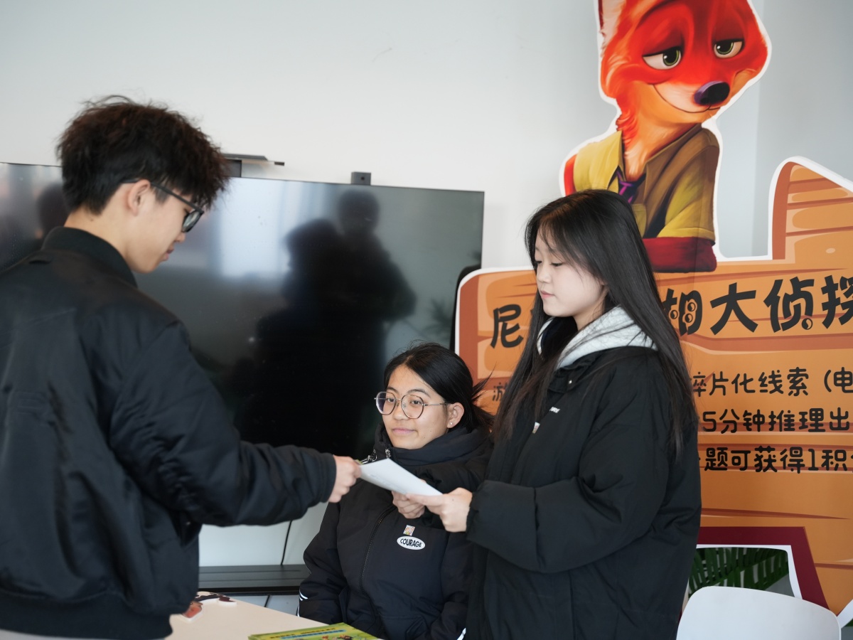 “太有代入感了!拿到身份卡的那一刻,感觉真的闯进了另一个世界!”刚完成“公民登记”的兰焱同学兴奋地说道。生日会现场,“公民登记处”前早早排起了长队,同学们依次领取专属身份卡,随机贴上各式角色贴纸,瞬间解锁“原住民”身份。