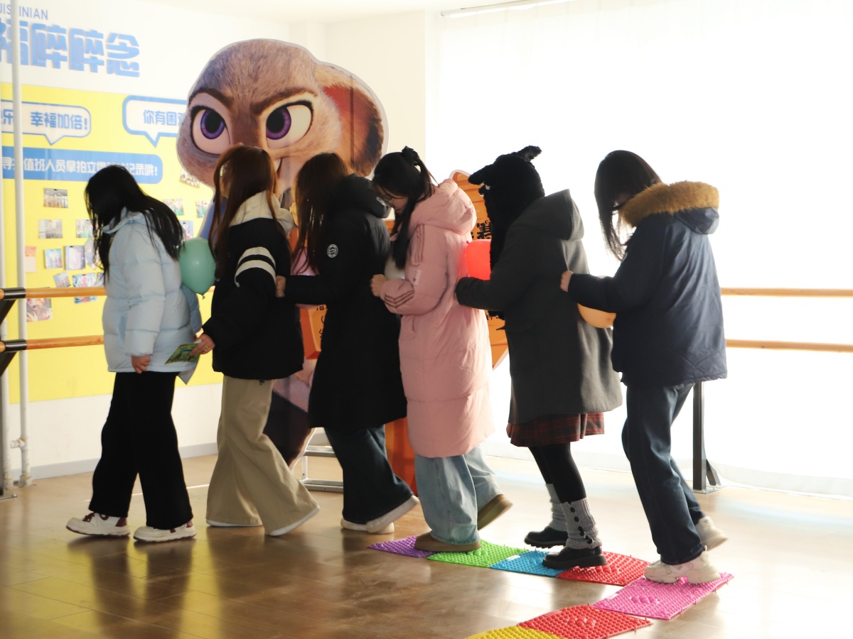 “咱们一定能拿到高分兑换美食!”“小心点,乒乓球别掉了!”毣谷书院3层变身“萌兽挑战场”,“全城闯关・趣味游戏”环节拉开序幕,寿星们自发组成六人小队,向着四大游戏发起挑战,用默契与协作赢取积分。“极速障碍赛”需两两绑气球过指压板,硌脚也喊冲;“真相大侦探”凭线索猜暗语,欢呼不断;“慢动作挑战”用长筷传乒乓,越“翻车”越勇;“默契大考验”则在无声协作中拉近距离。