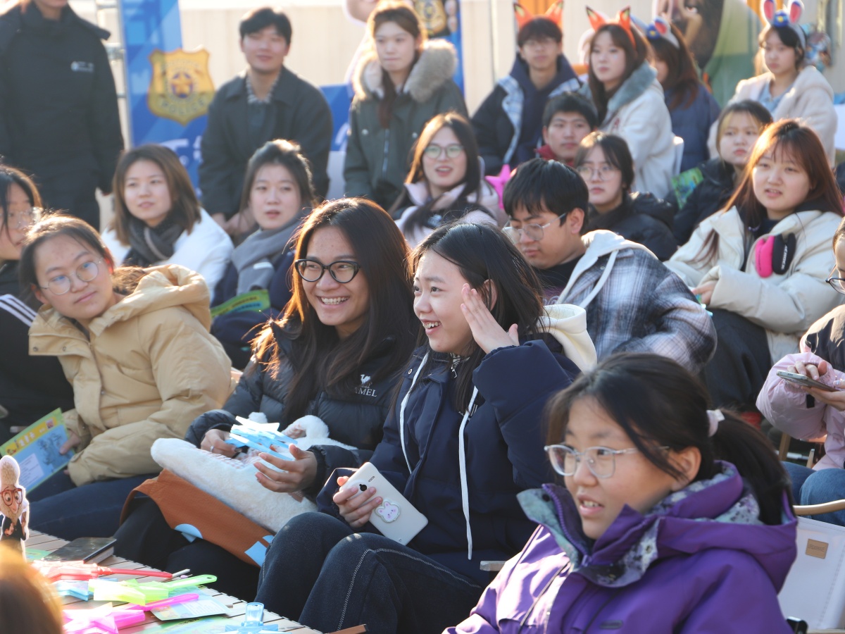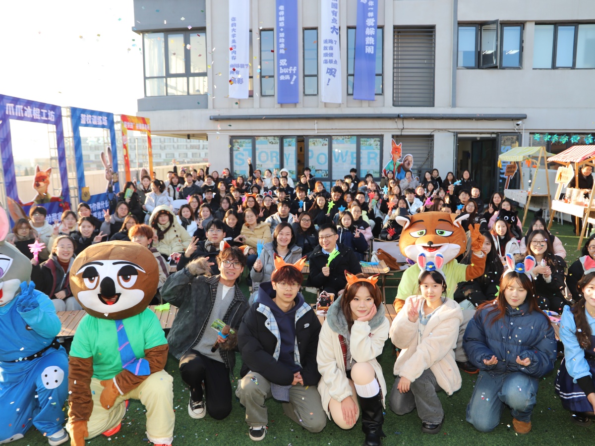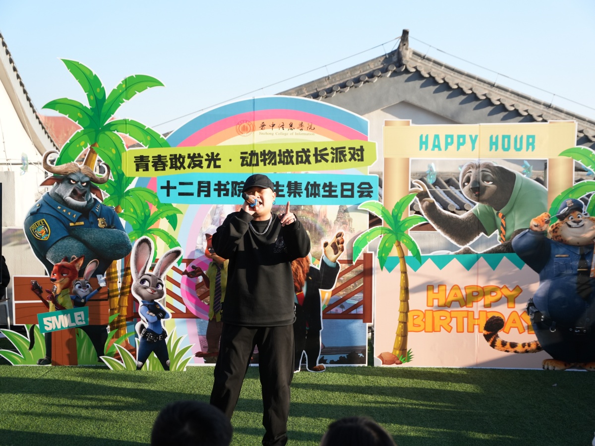 “别害羞,跟着节奏动起来!”大学生艺术团同学穿戴角色配饰领舞,《Zoo》的动感旋律点燃全场热情。无论是活力满满的舞者、洒脱不羁的伙伴,还是慢悠悠的模仿者,大家都卸下拘谨,尽情释放青春活力。礼花绽放、玩偶人登场,现场化作欢乐的海洋,每一个舞步都藏着热爱,每一张笑脸都闪耀着光芒。欢乐的时光虽短,却足以镌刻成永恒记忆,这场生辰之约,既是欢乐的聚会,更是成长的礼赞——师生跨越身份并肩,在包容中凝聚力量,在陪伴中共同发光。