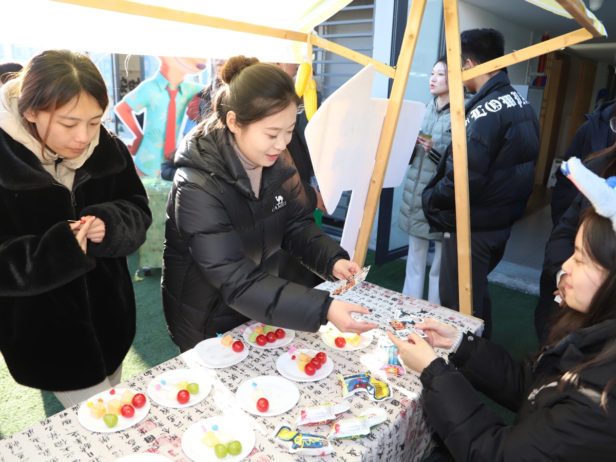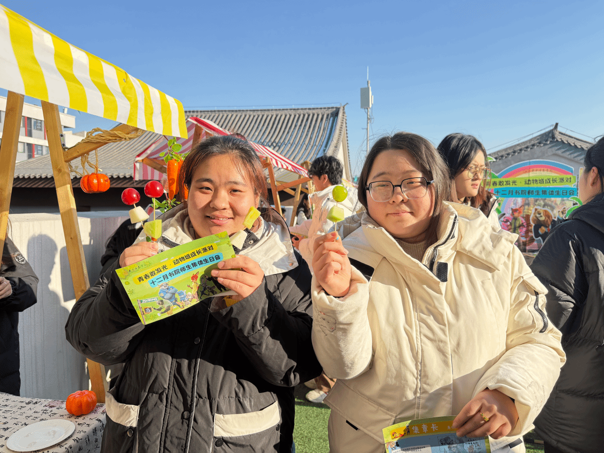 天台复刻了四大特色摊位,寿星们拿着辛苦赢来的积分券,兑换各类风味小吃、暖心烤红薯等美食。“通过自己努力换来的美食,吃起来格外香!”同学们穿梭在各个摊位之间,脸上洋溢着满足的笑容,冬日里的寒意被这份欢乐与美味彻底驱散。
