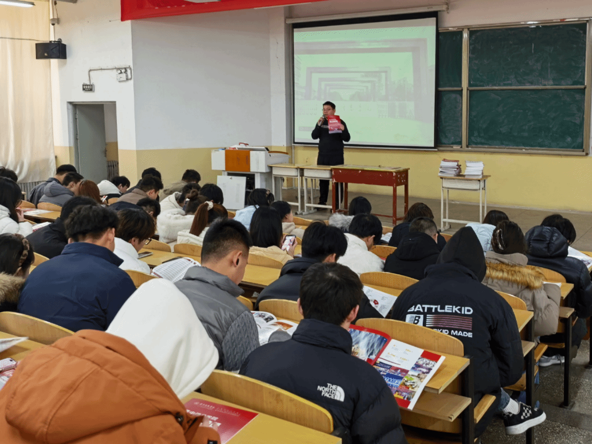杨老师系统介绍了学校的办学历史、学科布局、师资队伍、人才培养特色及近年来在学科竞赛、创新创业方面取得的突出成绩。他特别强调,学校通过“四位一体双院制”的人才培养模式,助力每一位学子成为兼具专业技能、管理思维与人文素养的未来社会中坚力量。