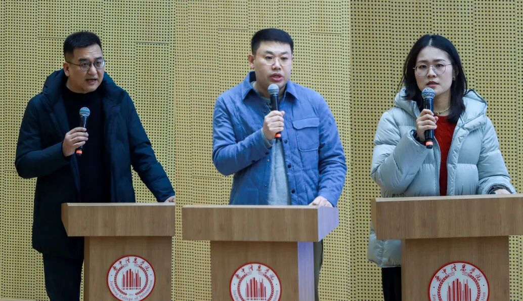 在议题分享环节,程燕、王海文、孙佳婧、张丽斌四位教师代表专项议题讨论小组做成果汇报,汇报聚焦音乐节优化路径、赛事展演协同机制、评估支撑策略、招生赋能转化等方向,提出了诸多兼具前瞻性与操作性的思考与建议,为集团决策与各校区实践提供了重要参考。