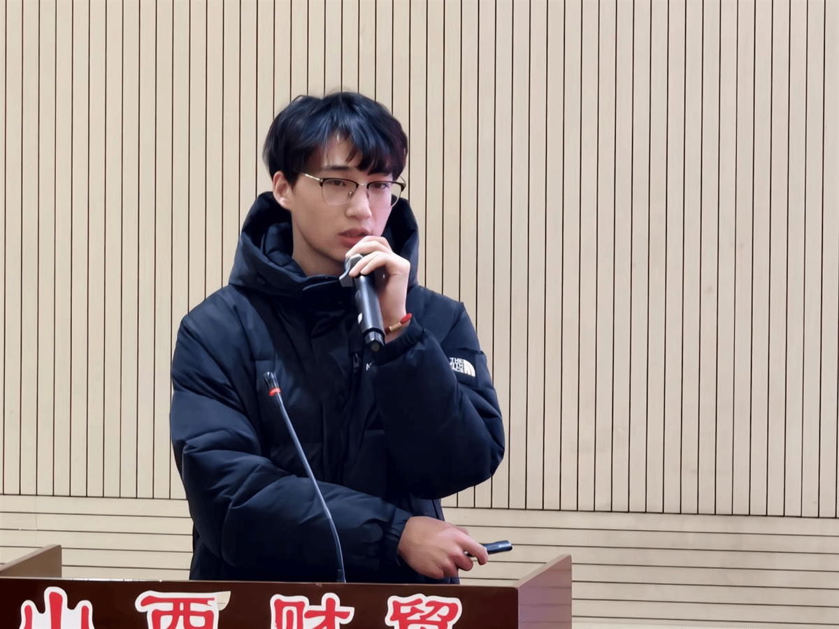郝崇丞同学结合个人亲身经历分享了自己从山西财贸职业技术学院到晋中信息学院的完整升学历程。他从“财贸经历”、“专升本备考经验”、“升本后的感受”三个方面展开,语言真挚、内容详实,赢得了在场师生的阵阵掌声。