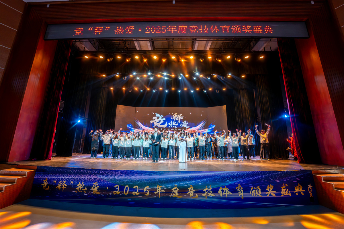 “竞释·赛事中同频的热爱”篇章里,将2025年校园赛事的热血瞬间一一回放:至强杯、新星杯、阳光杯、俱乐部等33场趣味赛事吸引超3万名学子参与,14项年度燃动赛事经票选脱颖而出,15.92万元校内赛事奖金为热爱加码,获奖代表们捧着奖杯,笑容里藏着赛场的汗水与荣光。乌马河碗橄榄球赛斩获年度最具影响力国赛赛事奖,全国6个省份队伍的激烈角逐,让18万高额奖金的赛场更具分量。年度优秀指导教师奖项颁出后,王思源、贾永琦的采访视频悄然播放,镜头里的讲述让观众读懂了幕后的付出,而年度最具体育贡献奖的揭晓,更是将掌声送给了为校园体育筑牢根基的建设者。节目《绿光》登场,灵动的舞步搭配明快的旋律,将体育背后的温情与活力展现得淋漓尽致。