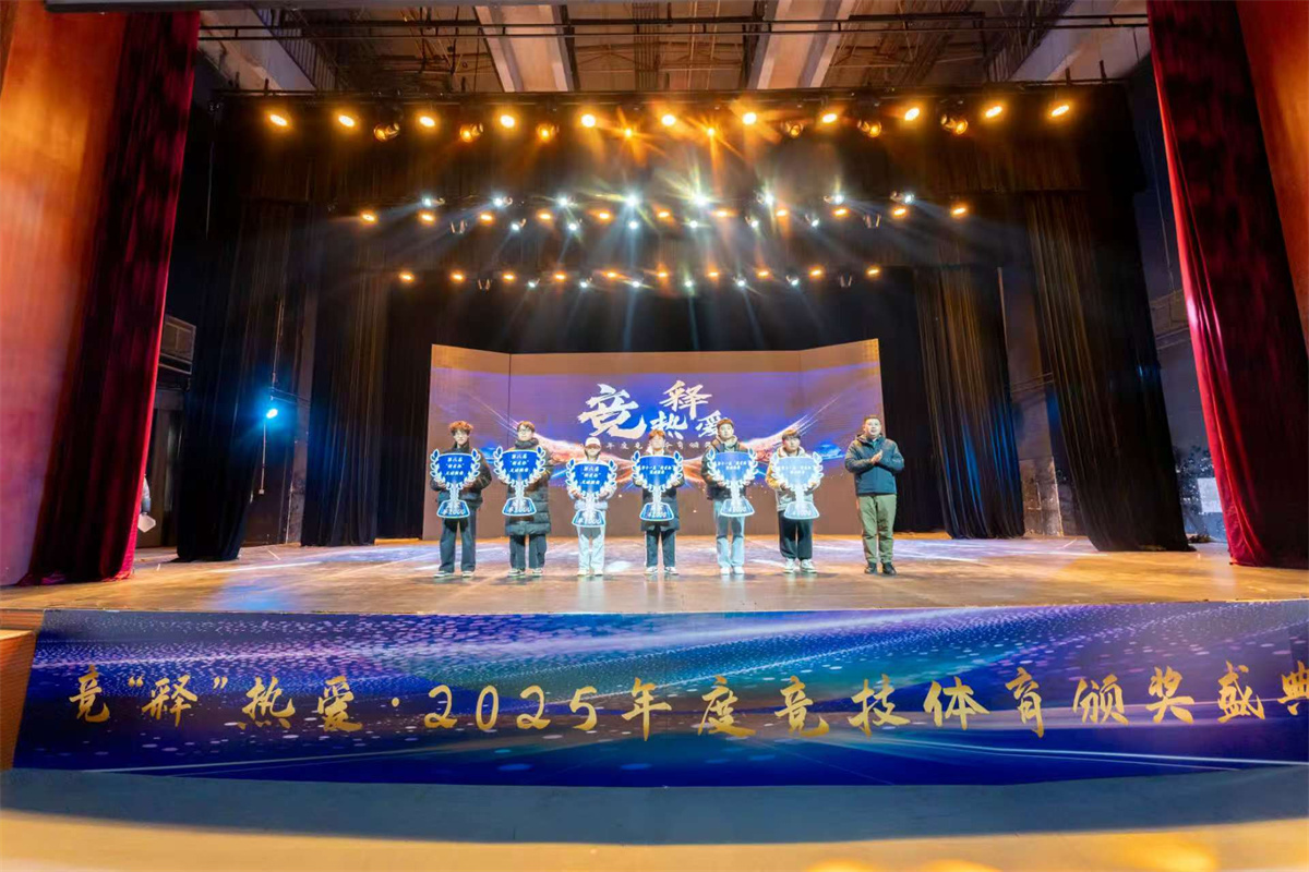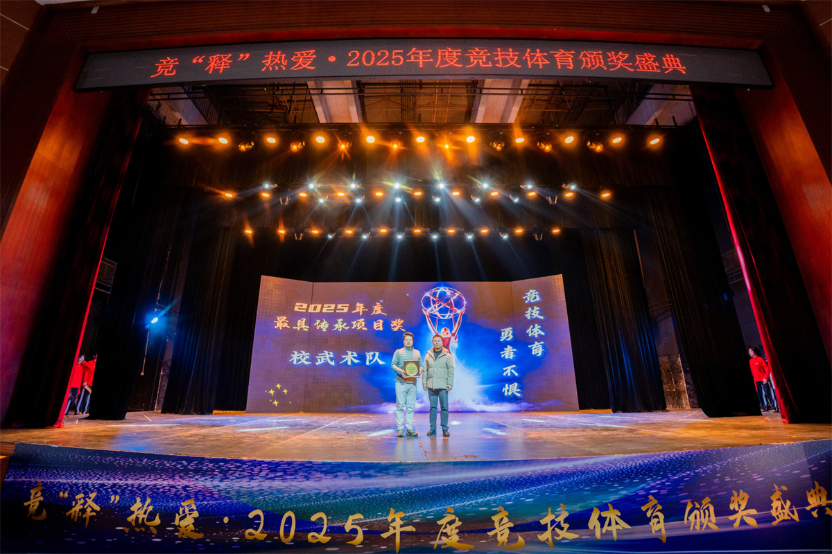 步入“竞释·淬炼在成长的热爱”篇章前,抽奖环节视频的播放让观众的热情持续攀升,而后rap《飘向北方》的表演更是点燃了现场氛围,强劲的节奏里满是青春的张扬与体育的热血。随后,年度最佳安全守护者、年度最具创新力营地导师奖等荣誉接连颁发,聚焦营地教育与校园体育保障的幕后力量;最具传承项目奖花落校武术队后,武术队成员登台表演,一招一式刚劲有力,将中华传统武术的魅力展现得淋漓尽致,也让“成长与传承”的主题更具分量。