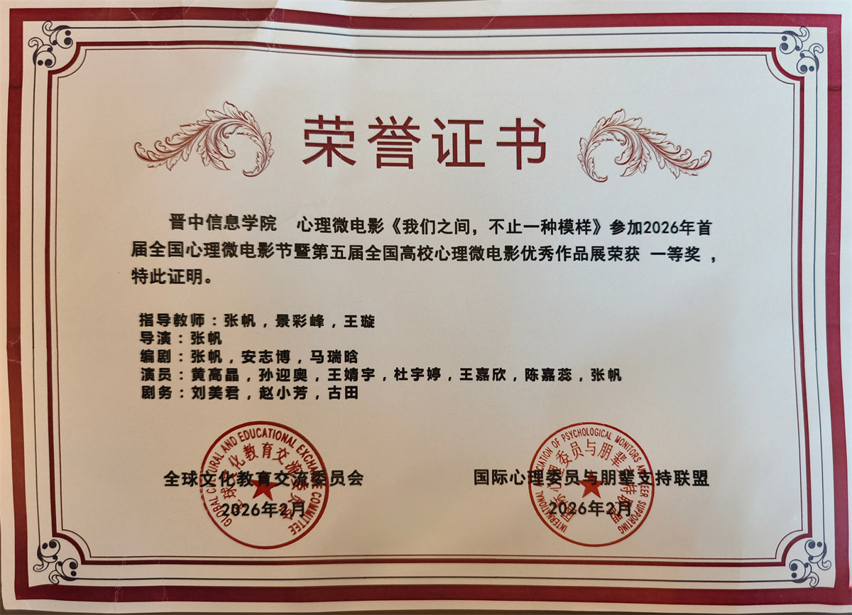 在近日由全球文化教育交流委员会与国际心理委员与朋辈支持联盟联合主办的第五届全国高校心理微电影大赛中,学校学生处心理健康教育中心创作选送的微电影作品《我们之间,不止一种模样》,从包括中南大学、湖南大学、天津大学等在内的213所高校作品中脱颖而出,一举斩获全国一等奖!这不仅是我校心理育人成果的一次高光展示,更标志着我们在心理健康教育创新与实践方面迈出了坚实而精彩的一步。