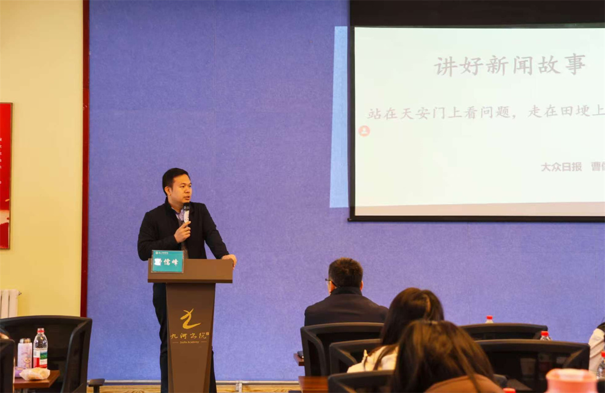 大众日报教育站站长曹儒峰、泰安日报社时政新闻采访中心副主任陈阳,围绕教育新闻采写、叙事结构、标题打磨及摄影摄像、后期剪辑等核心环节,结合自身从业经验分享实战技巧,详细讲解如何撰写符合媒体需求的稿件,帮助宣传人员提升传统媒体新闻采用率。
