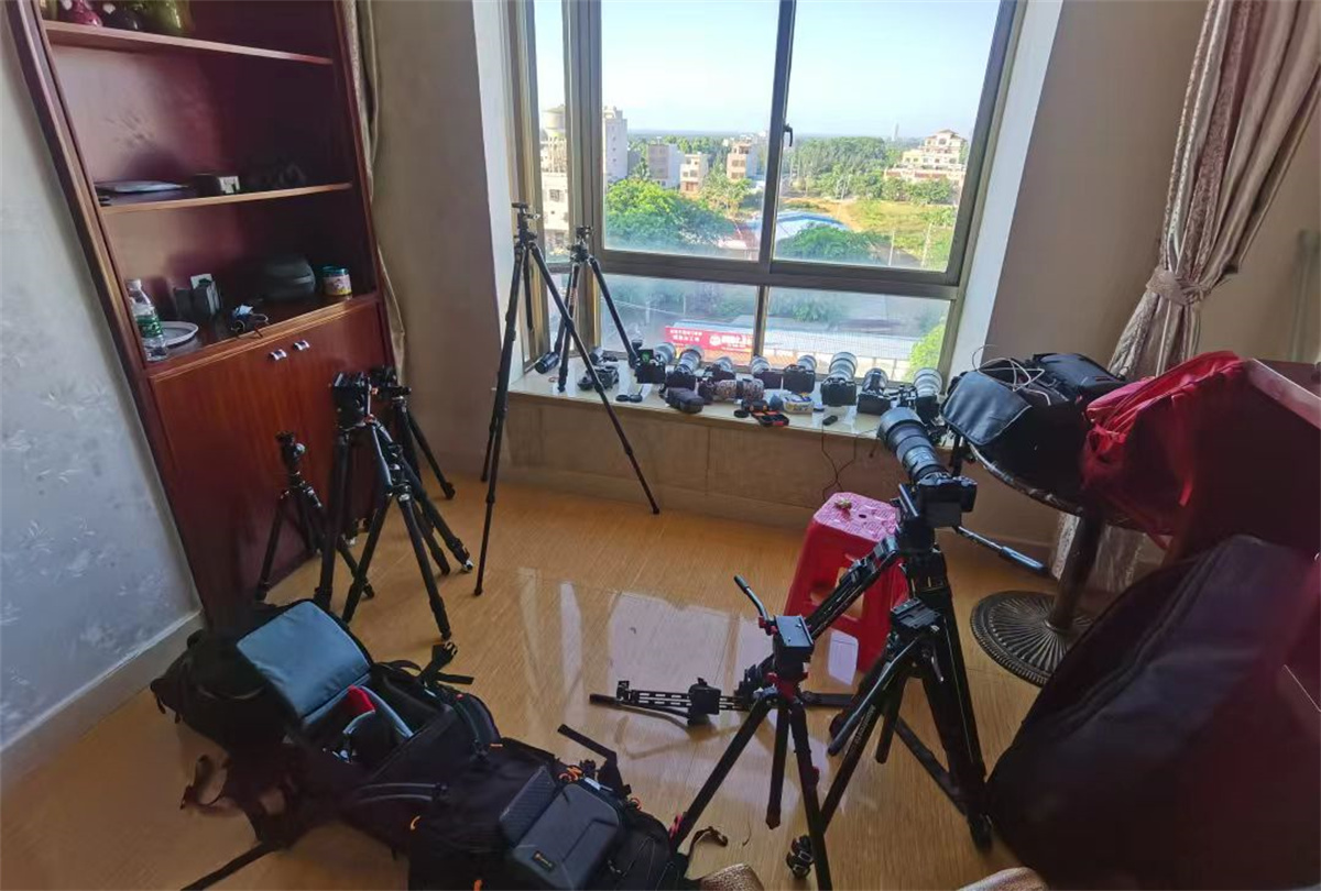 “拍摄火箭发射是高难度的挑战——现场环境瞬息万变,对摄影师的抗压能力和临场应变能力都提出了极高要求,只有高素质、高水平的专业摄影师才能胜任。”孙晨豪回忆,“作为团队中唯一的‘新人’,我负责长征七号遥3与天舟二号发射过程中,一级至三级回转平台及火箭发射全过程的摄影记录。按照组织规定,拍摄后须在两分钟内完成选图、修图、出图,仅三级回转平台的发射影像就有六百余张。面对如此严苛的流程,我内心其实有些慌张。但当学校的指导老师和团队成员得知任务艰巨后,纷纷为我出谋划策,开始了远程‘支援’。他们的陪伴让我逐渐安下心来,我迅速调整状态、克服紧张,还主动协助拍摄小组寻找最佳拍摄点位,最终圆满完成了此次任务。”