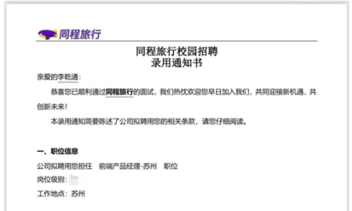 经过双体的系统训练和北京的实战洗礼,李乾通完成了从“技术宅”到“产品经理”的华丽转身。他以高薪斩获同程旅行总部的正式Offer,实现了从校园到互联网大厂的跨越。