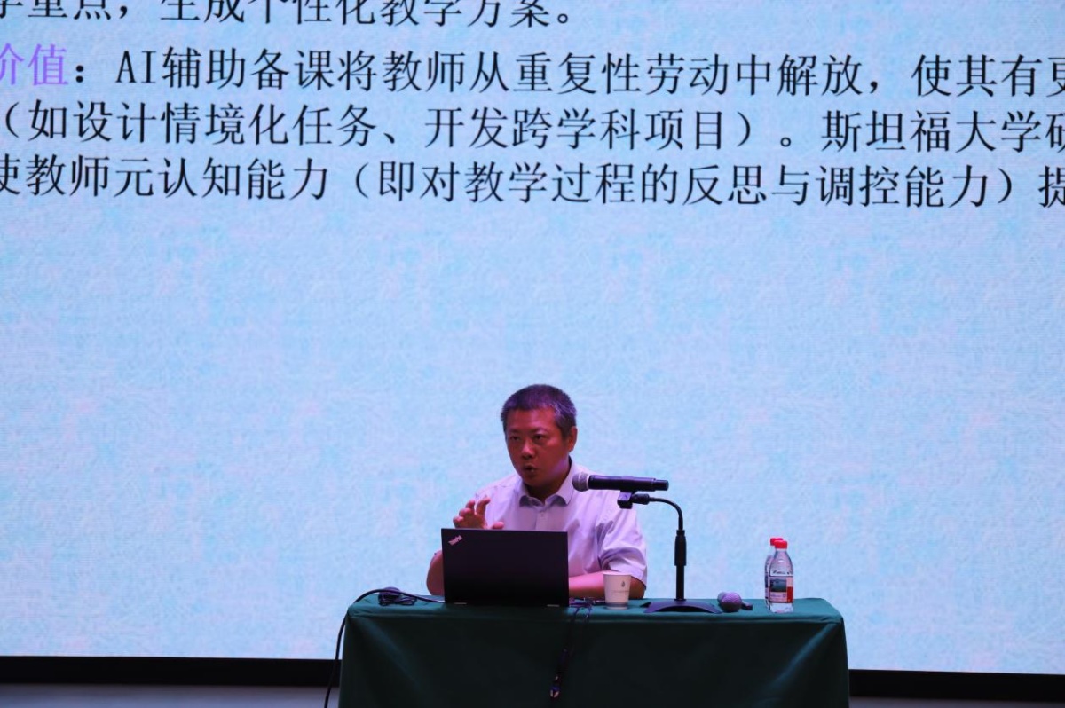 在《智慧课程设计与数字化教学能力提升》报告,王志强教授为参训教师打造了从理念到实操的智慧教学落地体系。分享从国内外高校信息化建设特色切入,明晰了浙江大学、上海交大、斯坦福等校在智慧教学、数字孪生、大数据分析等领域的建设亮点,通过本校实操案例,深入讲解了智慧教室搭建、多屏互动教学、云空间资源应用等核心实操内容,系统解读了微视频、虚拟仿真实验、游戏化教学的资源设计与开发方法,同时结合一线教学问题,解答了翻转课堂实施、大模型教学应用、项目化教学共创等关键疑问,为参训教师推进智慧课程建设、提升数字化教学能力筑牢了实践根基。