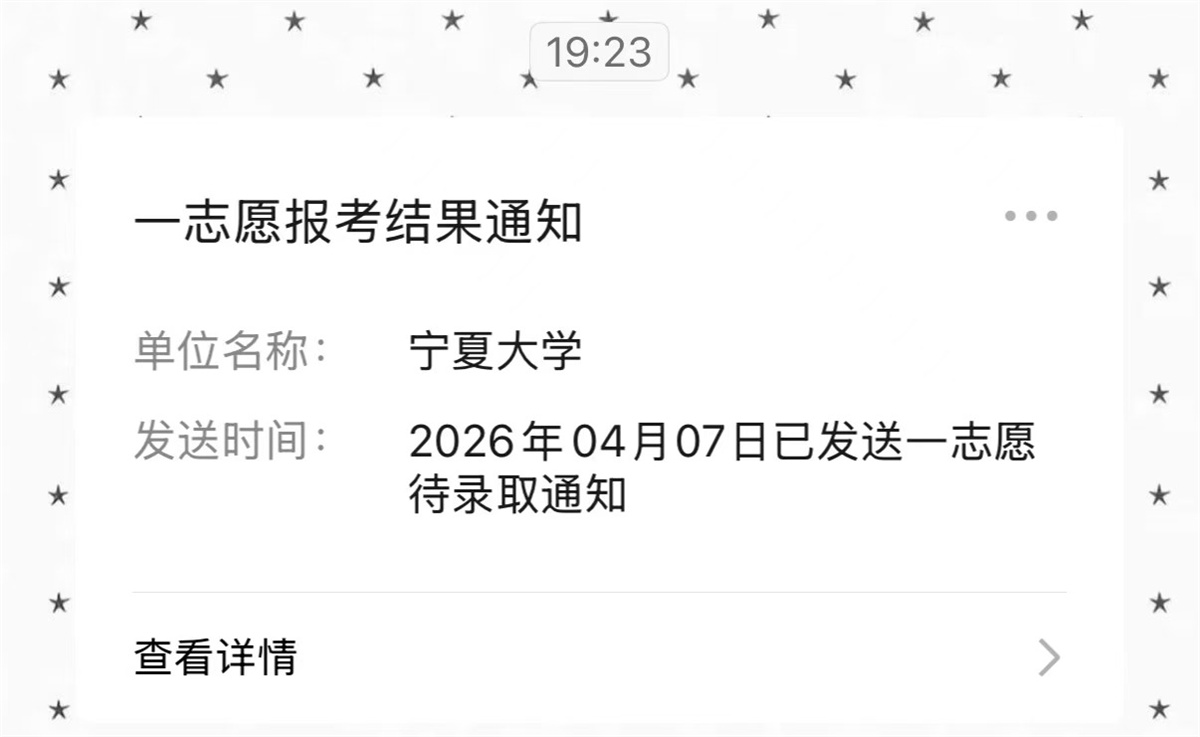 自习室里那扇见证日夜坚守的窗,镌刻着对未来的期许;那些无声的坚持、细碎的努力,汇聚成冲破迷雾的力量,点亮了黎明前的道路。功不唐捐,玉汝于成。历经漫长备考与等待,徐佳敏,这个从普通本科走出的女孩,凭借零基础自学6门专业课的毅力,取得初试第11名、复试第11名的优异成绩,成功踏入宁夏大学的校门。她用结果证明:民办不是标签,逆袭并非神话。