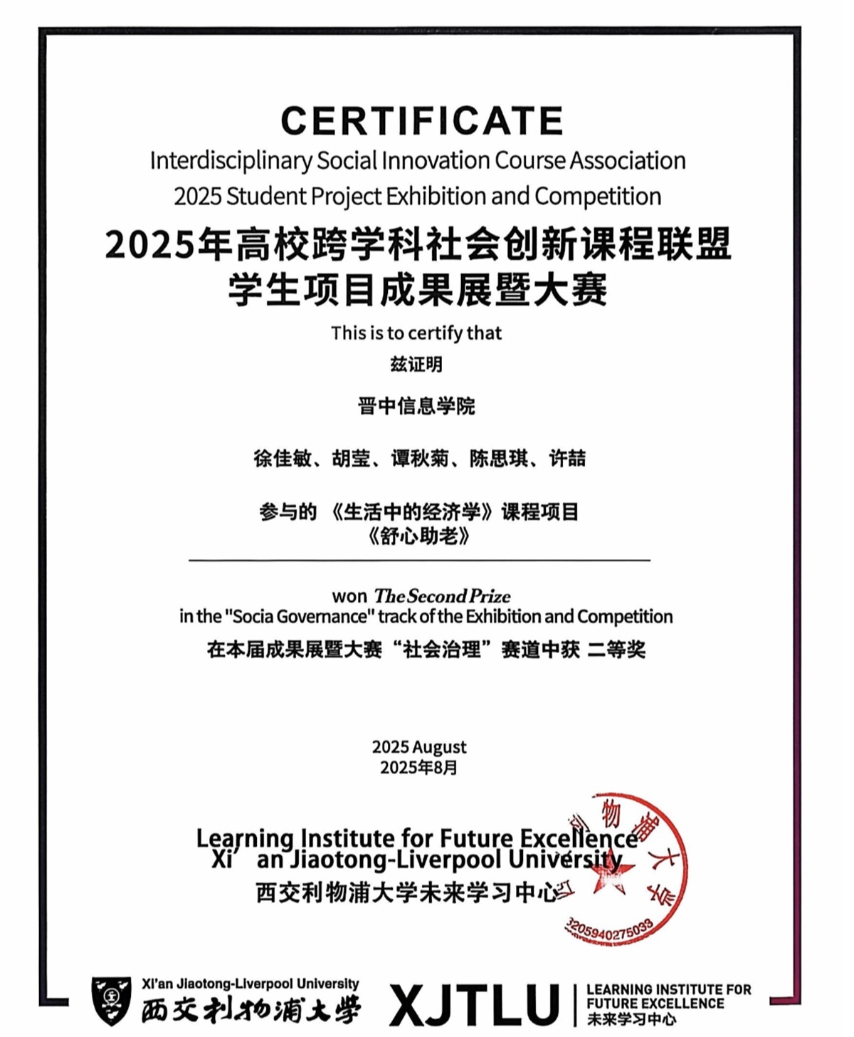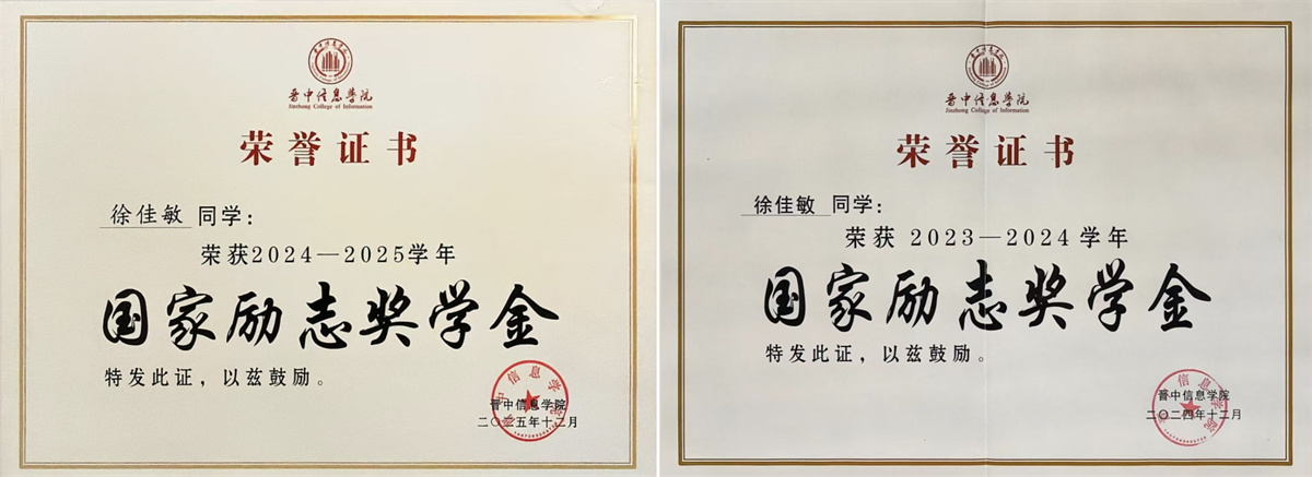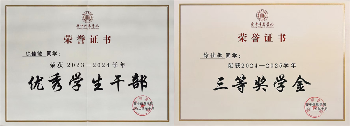 编者按:徐佳敏,女,中共党员,山西大同人,晋中信息学院远景学院2022级计算机科学与技术专业学生。曾任学校新媒体中心官微运营团队总监、远景学院学生会宣传部部长。在2026年研究生考试中,她以初复试排名双十一的成绩,上岸宁夏大学农村发展专业硕士。在校期间,她曾荣获2024年睿抗机器人开发者大赛(RAICOM)“魔力元宝赛项目”国赛二等奖、2025年高校跨学科社会创新课程联盟学生项目成果展暨大赛“社会治理”赛道二等奖、获评两次国家励志奖学金等荣誉,综合能力突出、发展全面。