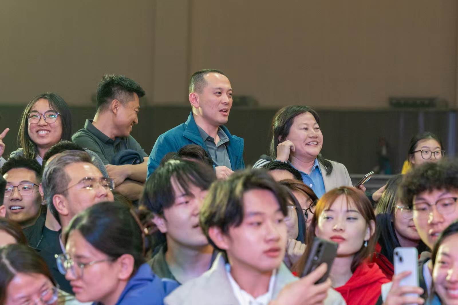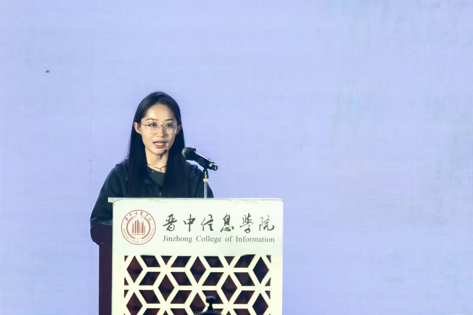 运动员、裁判员代表庄严宣誓后,学校女子200米、400米、800米纪录保持者徐丽源分享她的成长故事。她动情回顾了因伤病与体育梦擦肩而过的遗憾,讲述了在信院完满教育的滋养下,重新拾起热爱、突破自我的蜕变历程。她坦言,校园体育不仅强健了体魄,更培养了她自律、坚持与担当的品质,这些正是她步入职场后最宝贵的财富。她勉励在场学弟学妹:“趁青春尚在,趁热血未凉,抓好专业学业,坚持运动热爱,在赛场上拼搏,在实践中成长。”真挚的分享让在场师生无不动容,掌声久久不息。