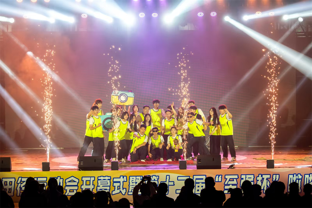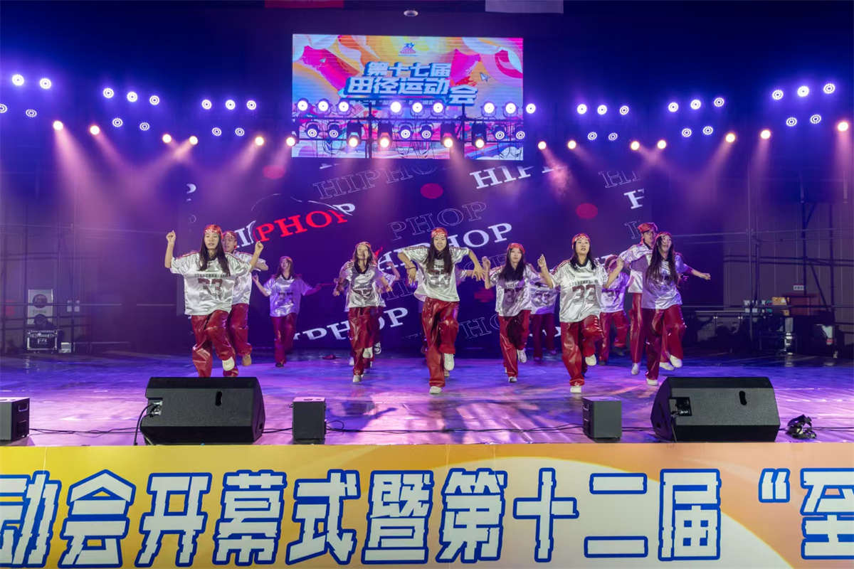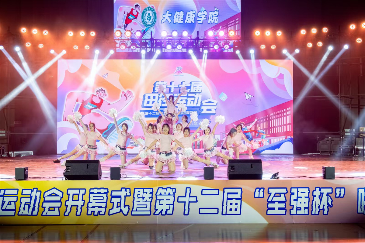 晋中市太谷区委、区政府相关领导及有关部门负责人,晋中信息学院全体校领导及各职能部门、二级学院、书院负责人出席开幕式。夜幕降临,倒计时光影点亮全场,开幕式在欢呼声中正式拉开帷幕。率先登场的是第十二届“至强杯”啦啦操联赛自编花球项目,各学院代表队依次亮相。队员们身姿矫健、舞步灵动,队列整齐划一、节奏铿锵有力,用饱满的热情与蓬勃的朝气诠释青春活力,赢得全场阵阵掌声与喝彩。
