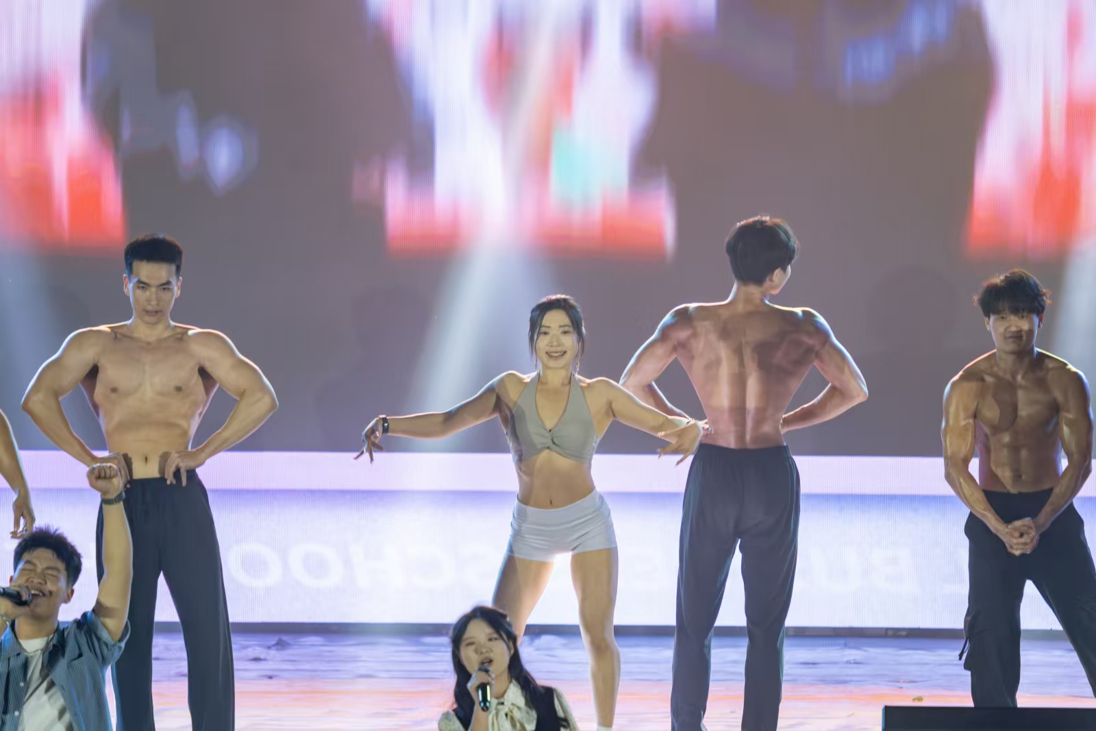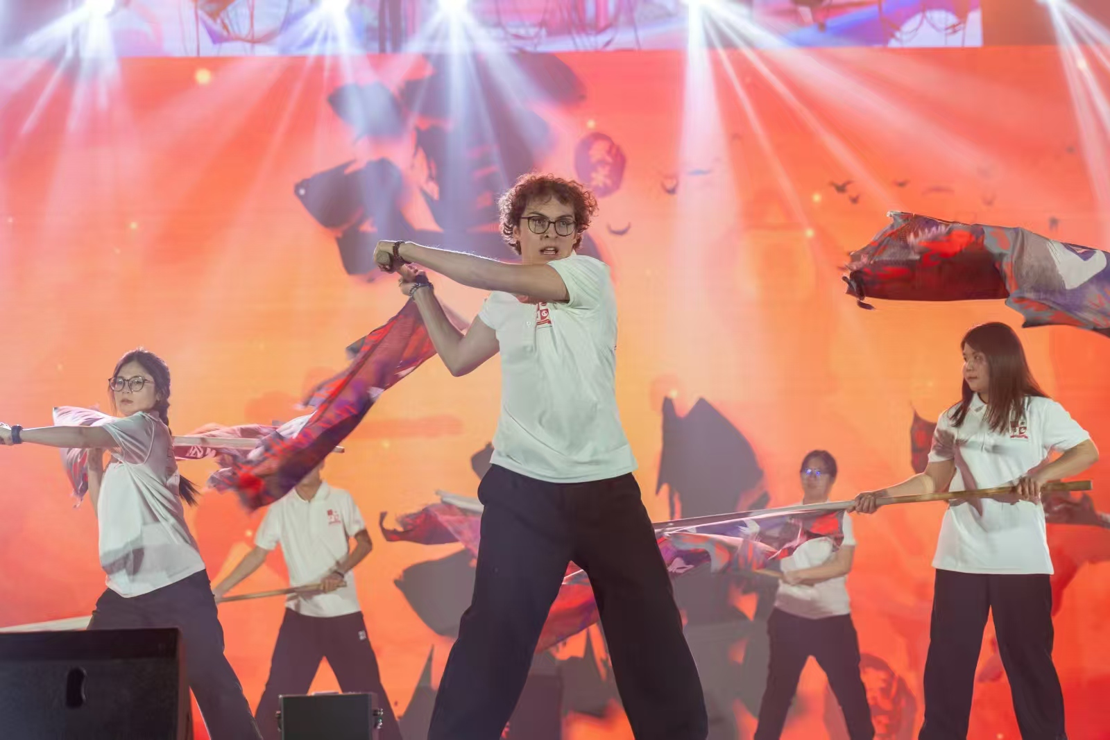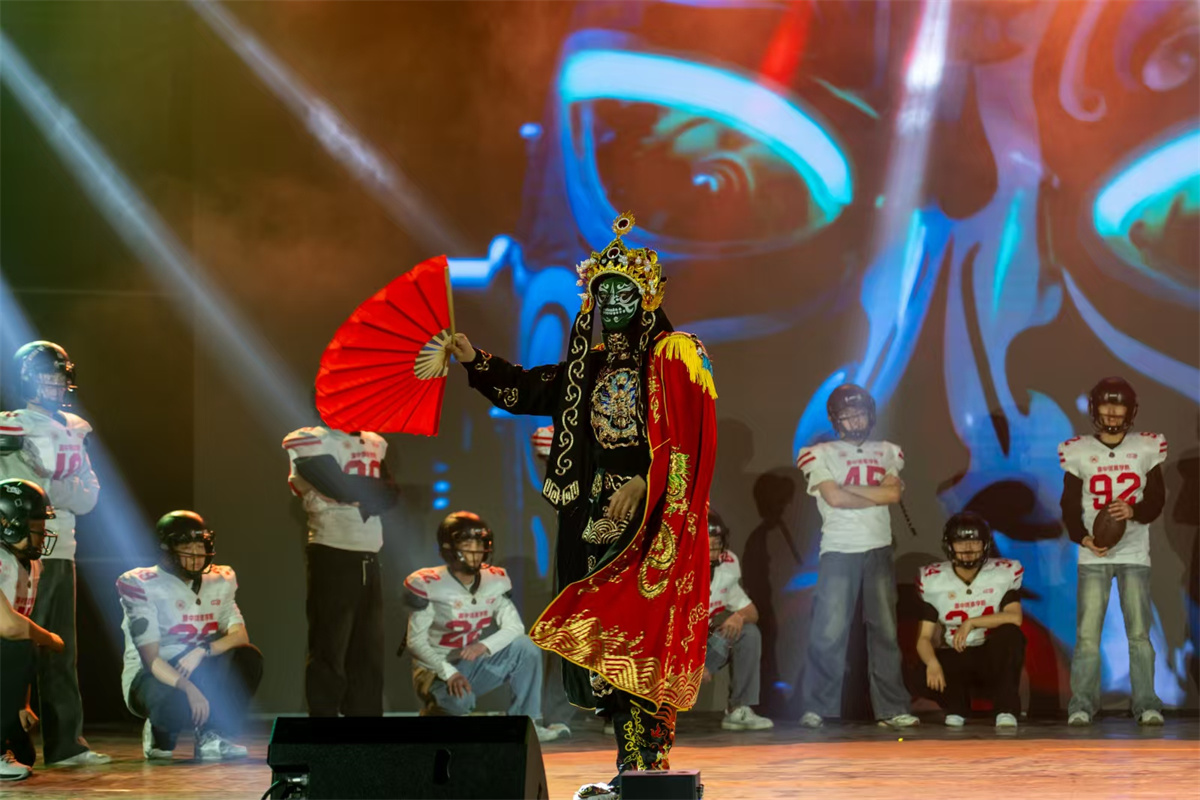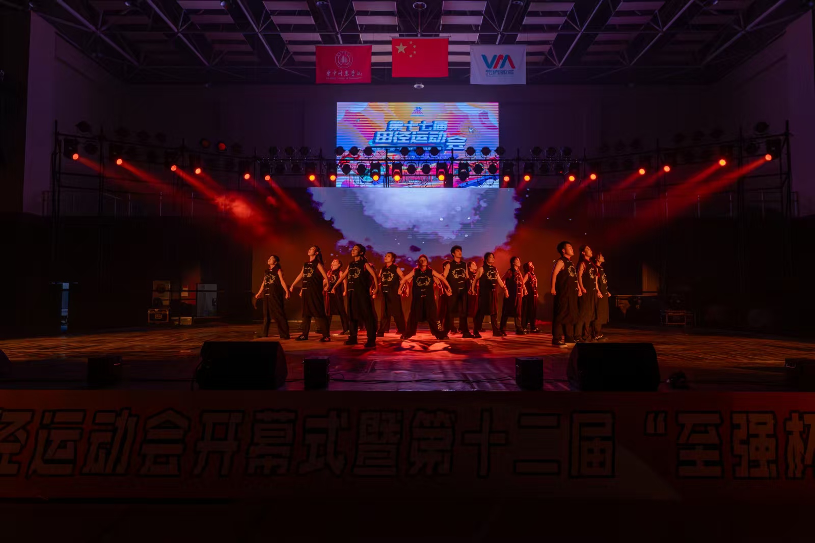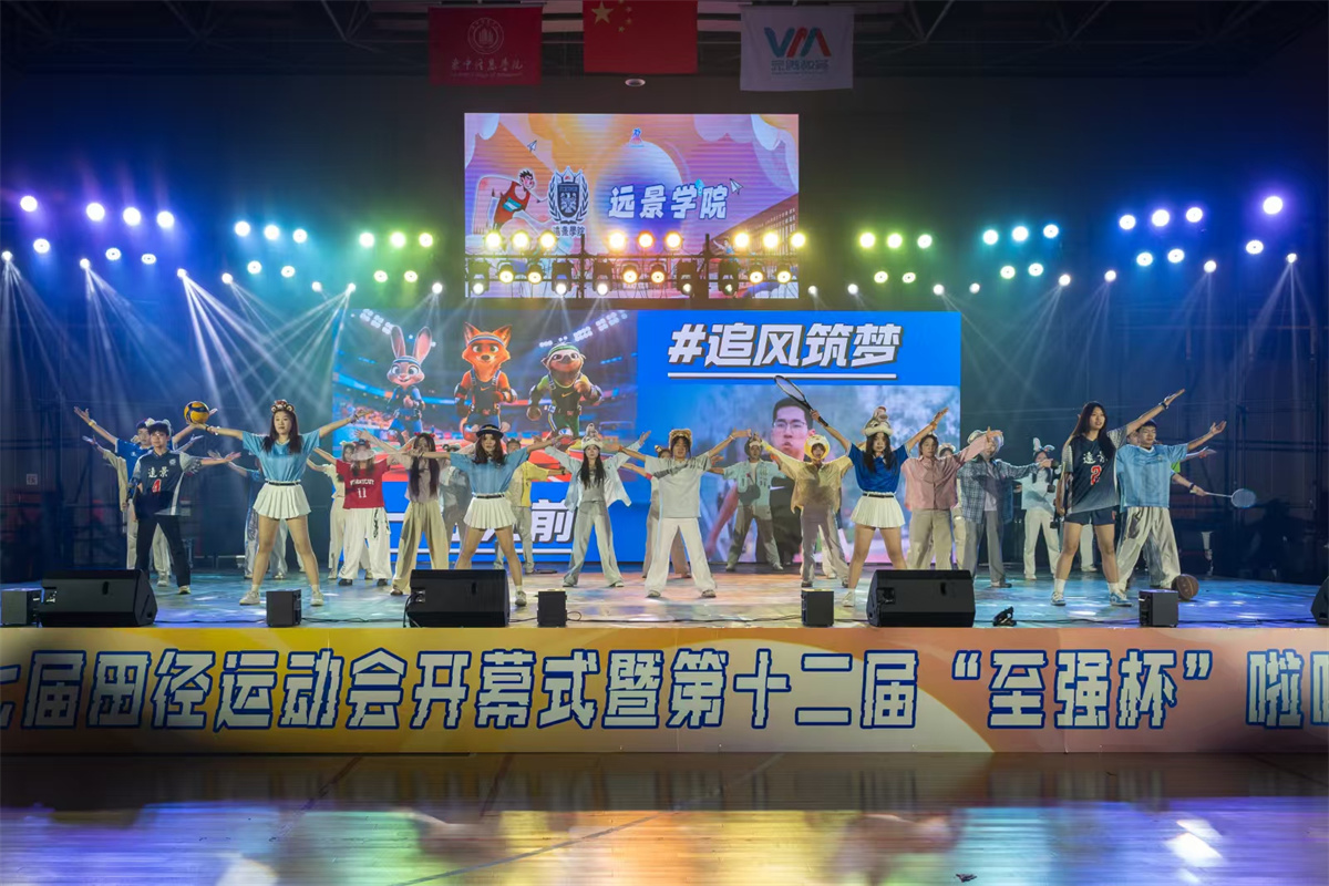 伴随着激昂的《运动员进行曲》,各学院运动员方阵迈着铿锵有力的步伐依次入场,创意十足的展示成为开幕式上最亮眼的风景。信息工程学院将科技与运动巧妙结合,机械舞与欢快舞曲无缝切换,演绎“人机共舞,信启未来”的创新理念;智能工程学院以橄榄球为特色,融合赛博朋克与国风美学,尽显工科青年的智慧与力量;淬炼商学院·国际商学院以《未来梦想家》为主题,运动员风采展示与力量健美表演相得益彰,诠释商科学子的锐意进取;大健康学院传承竞技传统,全员出征、猛将云集,延续奋勇拼搏的赛场传奇;艺术传媒学院以水墨江湖为灵感,将艺术底蕴与体育精神完美交融;商务英语学院带来外教领舞的尊巴表演,多元文化碰撞出青春火花;远景学院以灵动姿态亮相,彰显“竞技体育,勇者不惧”的坚定信念。各方阵特色鲜明、气势如虹,现场掌声与欢呼声此起彼伏。