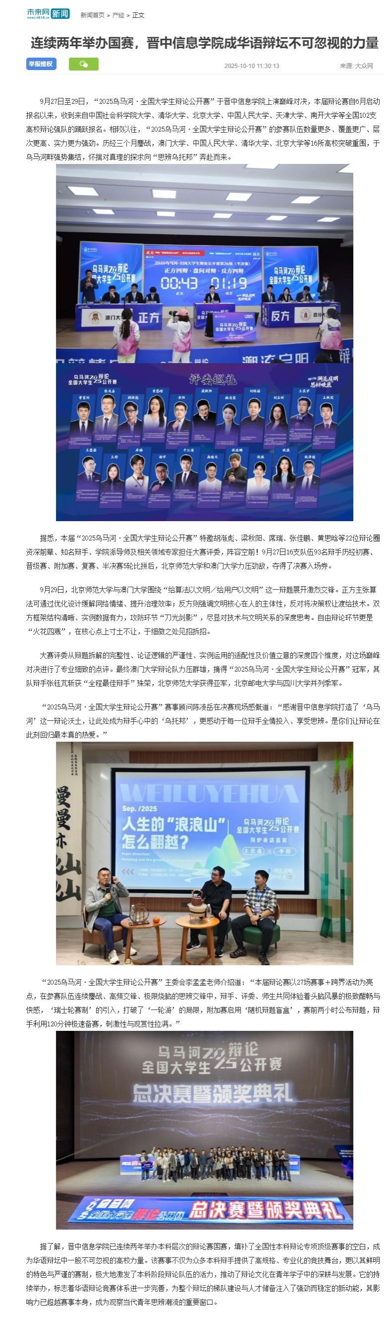 【未来网】连续两年举办国赛,晋中信息学院成华语辩坛不可忽视的力量