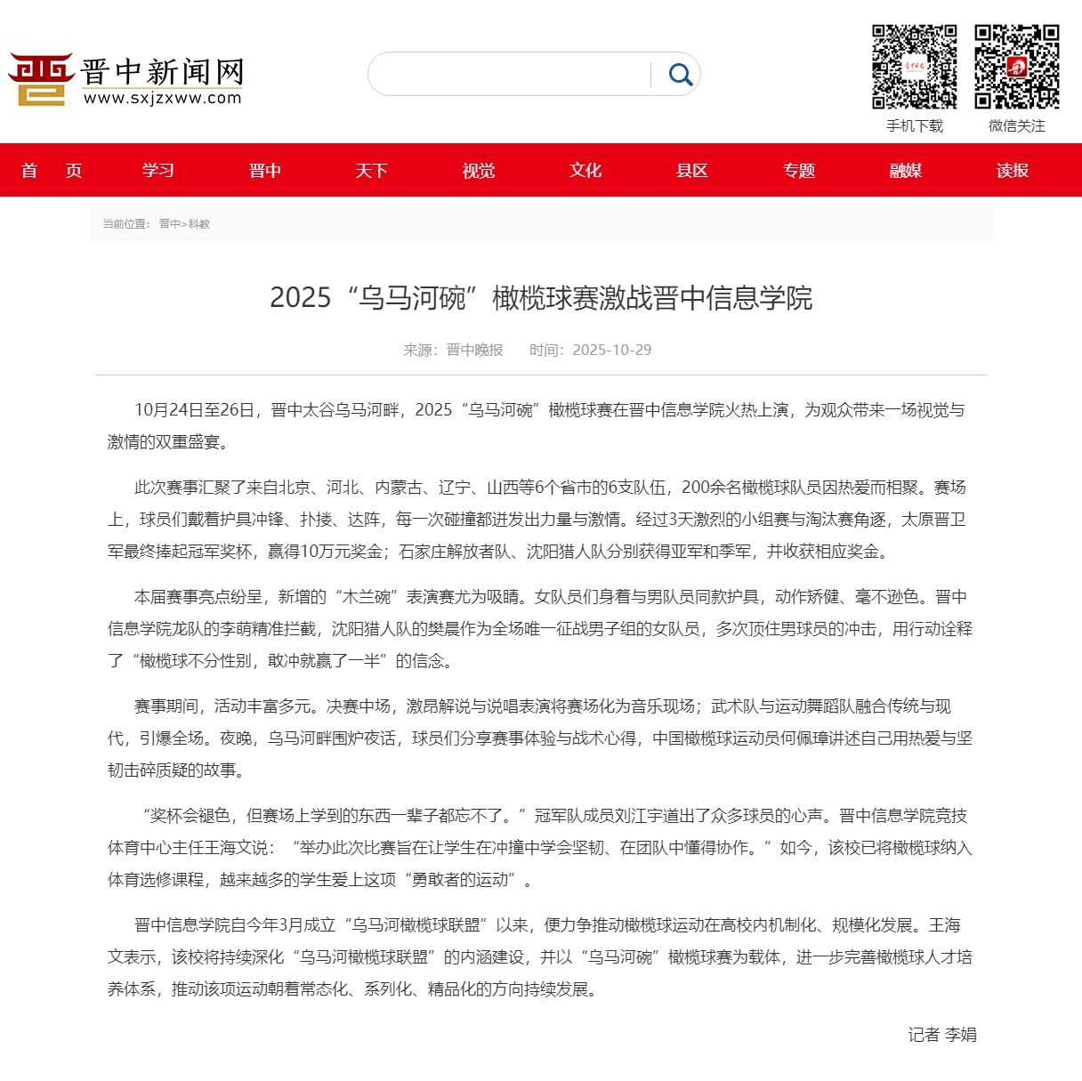 晋中信息学院自今年3月成立“乌马河橄榄球联盟”以来,便力争推动橄榄球运动在高校内机制化、规模化发展。王海文表示,该校将持续深化“乌马河橄榄球联盟”的内涵建设,并以“乌马河碗”橄榄球赛为载体,进一步完善橄榄球人才培养体系,推动该项运动朝着常态化、系列化、精品化的方向持续发展。