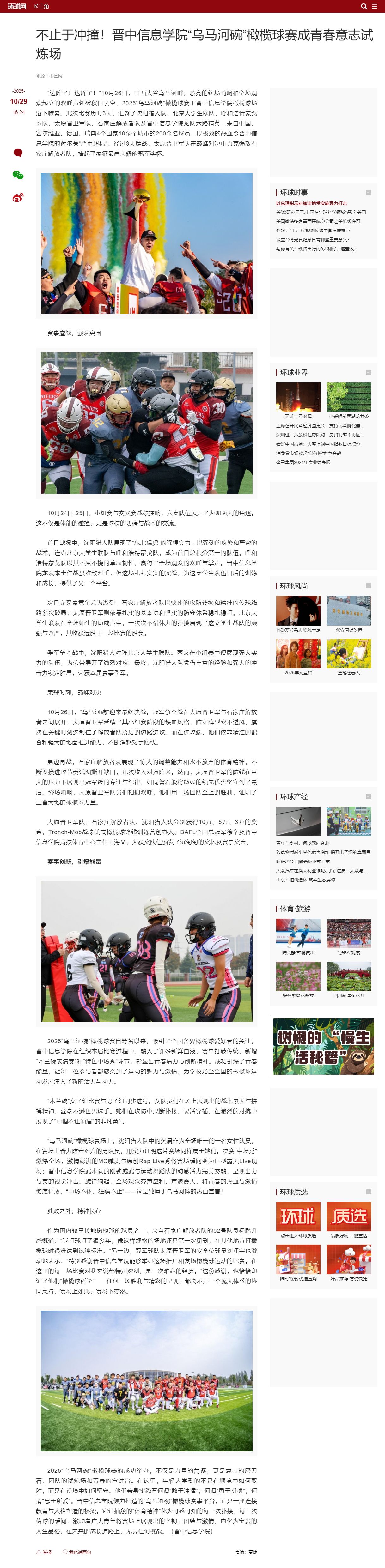 【环球网】不止于冲撞!晋中信息学院“乌马河碗”橄榄球赛成青春意志试炼场