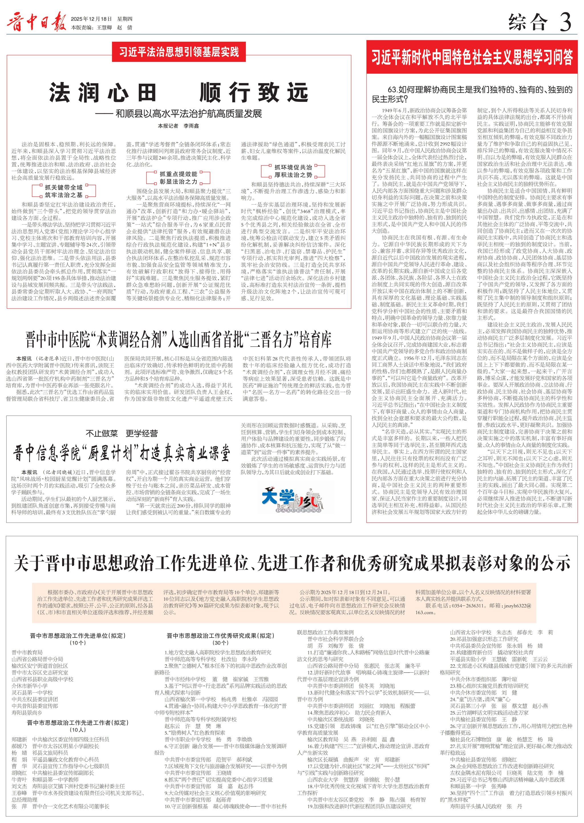 本报讯 (记者闫晓媛)近日,晋中信息学院“风味战场·校园厨星觉醒计划”圆满落幕。这场历时两个月的实践活动,吸引了全校众多学子踊跃参与。
