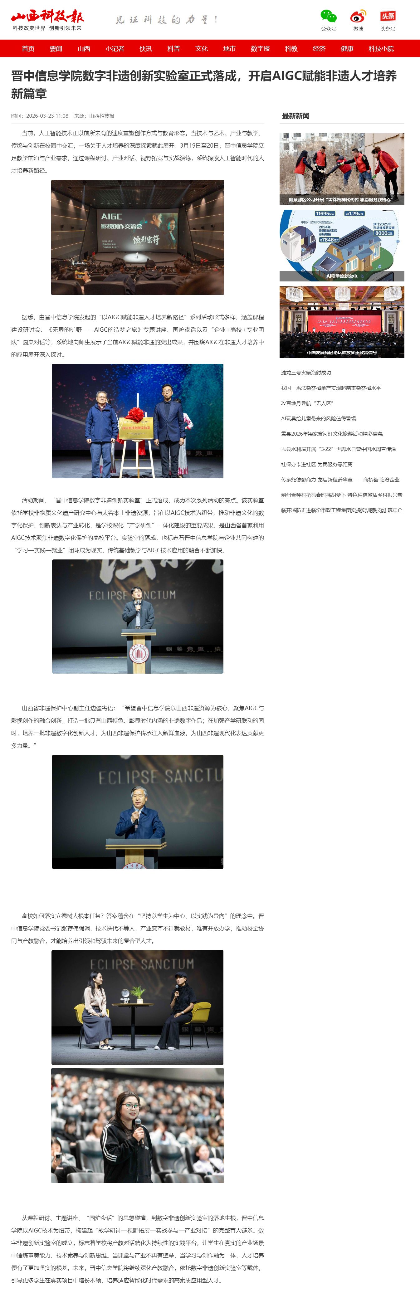 【山西科技报】晋中信息学院数字非遗创新实验室正式落成,开启AIGC赋能非遗人才培养新篇章