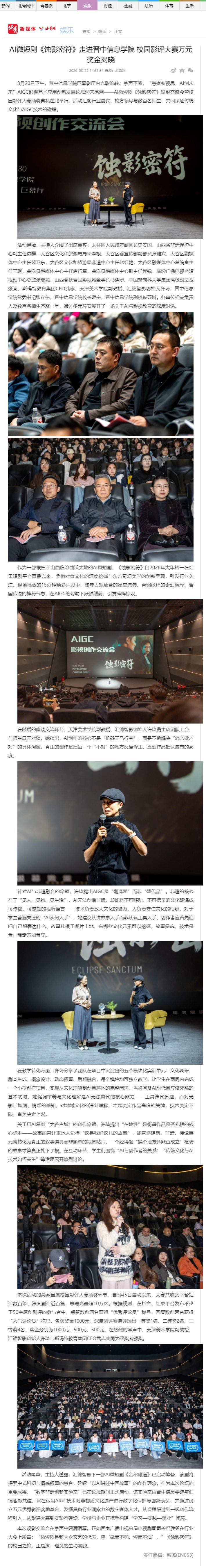 活动尾声,主持人透露,汇锦智影下一部AI微短剧《金尔隧道》已启动筹备,该剧将探索中式科幻与情感叙事的融合,延续“以AI讲述中国故事”的创作理念。作为本次论坛的重要成果,“数字非遗创新实验室”已在论坛期间正式启动。该实验室由晋中信息学院与汇锦智影共建,旨在运用AIGC技术对非物质文化遗产进行数字化保护与创新表达,并通过设立万元优秀影评奖励基金,发掘具备行业洞察力的数字媒体人才。从课程研讨到一线创作流程引入,从影评大赛到实验室建设,学校与企业正携手构建“学习—实践—就业”闭环。