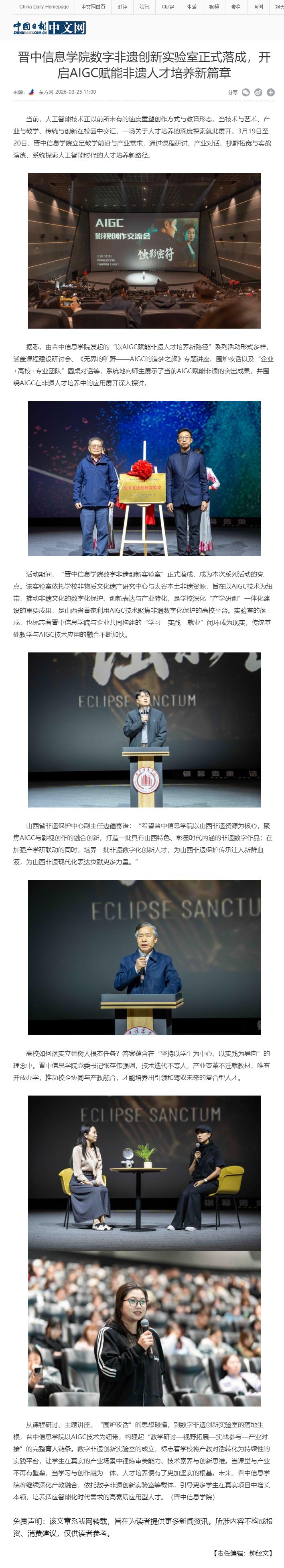 从课程研讨、主题讲座、“围炉夜话”的思想碰撞,到数字非遗创新实验室的落地生根,晋中信息学院以AIGC技术为纽带,构建起“教学研讨—视野拓展—实战参与—产业对接”的完整育人链条。数字非遗创新实验室的成立,标志着学校将产教对话转化为持续性的实践平台,让学生在真实的产业场景中锤炼审美能力、技术素养与创新思维。当课堂与产业不再有壁垒,当学习与创作融为一体,人才培养便有了更加坚实的根基。未来,晋中信息学院将继续深化产教融合,依托数字非遗创新实验室等载体,引导更多学生在真实项目中增长本领,培养适应智能化时代需求的高素质应用型人才。