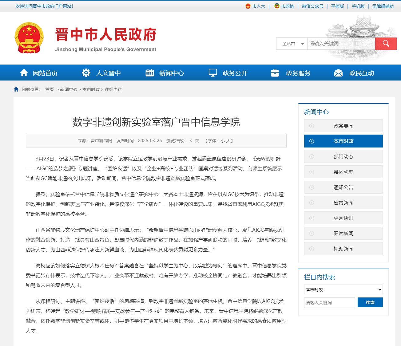 从课程研讨、主题讲座、“围炉夜话”的思想碰撞,到数字非遗创新实验室的落地生根,晋中信息学院以AIGC技术为纽带,构建起“教学研讨—视野拓展—实战参与—产业对接”的完整育人链条。未来,晋中信息学院将继续深化产教融合,依托数字非遗创新实验室等载体,引导更多学生在真实项目中增长本领,培养适应智能化时代需求的高素质应用型人才。