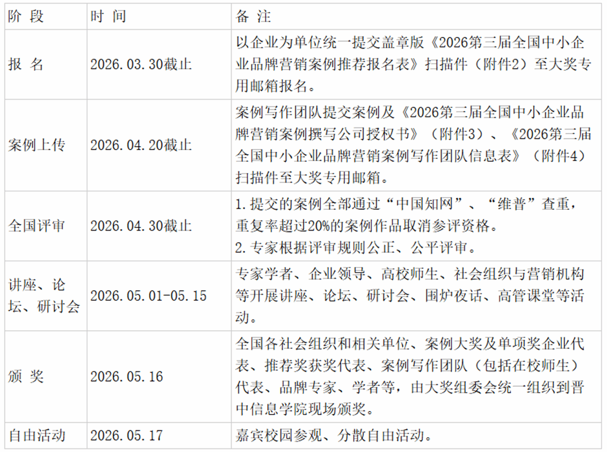 大奖报名和更多信息,请关注晋中信息学院官网https://www.jzci.edu.cn(通知公告)的《2026第三届全国中小企业品牌营销案例征集公益大奖方案》。