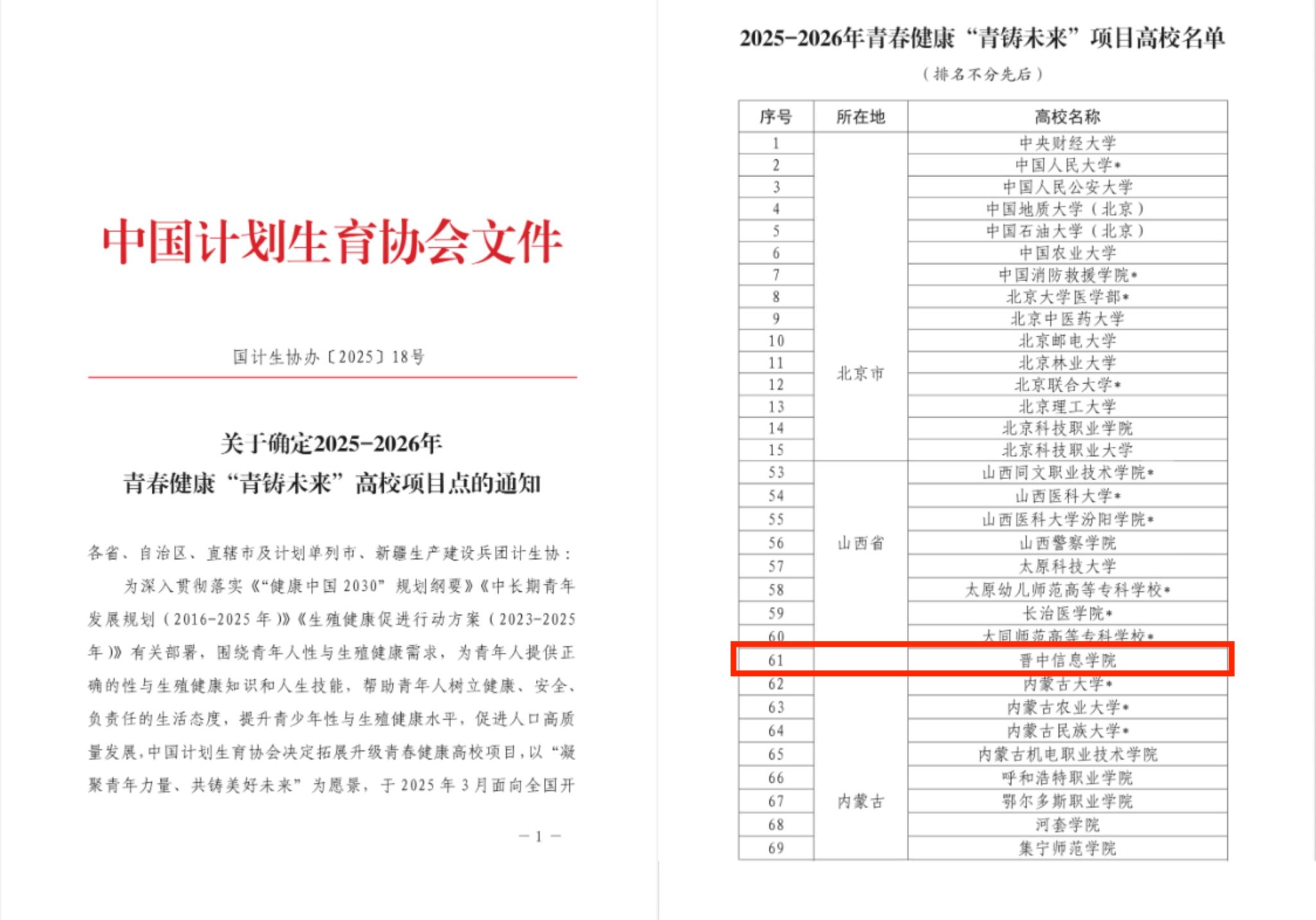 我校项目入选中国计划生育协会2025-2026年青春健康“青铸未来”高校项目