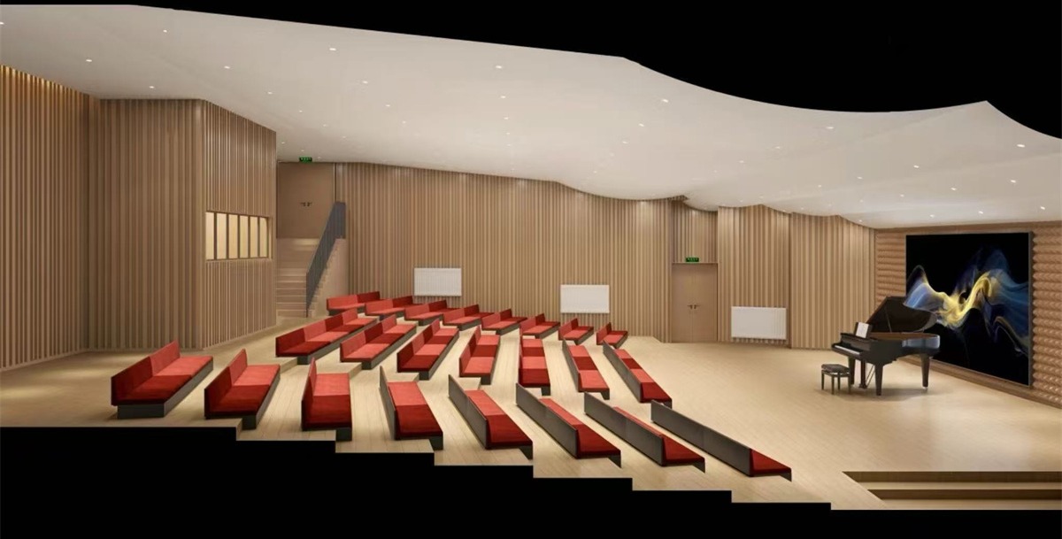 器乐排练厅1排练厅设有民族乐器12类、多媒体设备、音响等硬件均已配备,排练厅主要为开展器乐合奏教学、独奏教学、重奏教学等,同时可兼做各类器乐练习场所,可满足学生日常排练需要,容纳小型室内乐团排练。