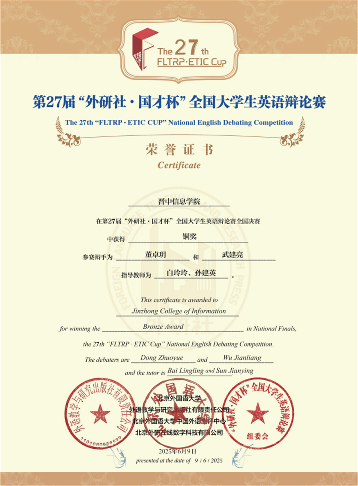 第27届“外研社·国才杯”全国大学生英语辩论赛